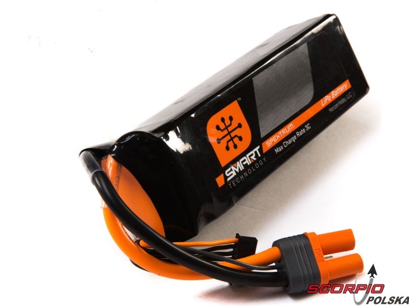 Akumulator LiPo Spektrum 14,8V 2200mAh 30C z technologią Smart do modeli samolotów i śmigłowców RC. Technologia Smart ułatwia i przyśpiesza ładowanie oraz wydłuża żywotność akumulatora. Konektor IC3, rozmiary 110 x 34 x 30mm.