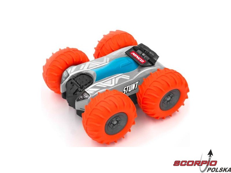 Wielki dwustronny model Nincoracers Stunt Orange z dużymi oponami. Jest on dwustronny. Żadna przeszkoda nie stanowi dla niego problemu. Potrafi robić niesamowite sztuczki. Skoki, skręty, jazda na tylnych kołach. Nadajnik drążkowy 27MHz z dużym zasięgiem i diodą LED zasilania. Działa na baterie AAA.