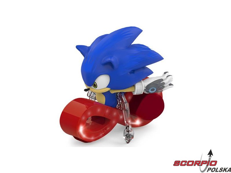 Na motocyklu z gumowymi kołami zamontowana jest licencjonowana figurka Sonic z wszystkimi szczegółami. Figurka wykonana jest z bardzo wytrzymałego, miękkiego tworzywa sztucznego. Po bokach motocykla znajdują się podpórki, które zapewniają stabilność, a podczas skręcania podpórki przesuwają się, powodując przechylanie motocykla na boki. Po bokach motocykla znajdują się migające diody LED, które z pewnością przyciągną uwagę dzieci.