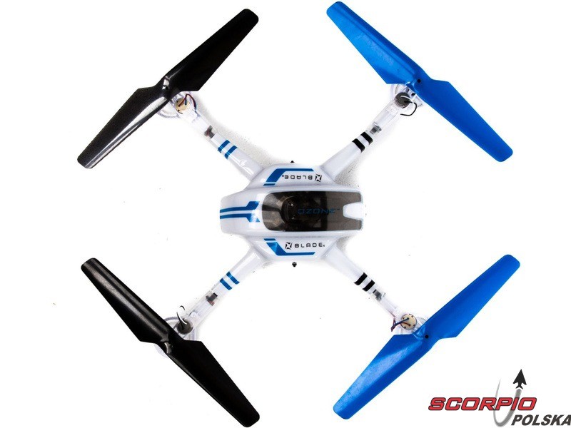 Blade Ozone napędzają cztery szczotkowe silniki z przekładniami, które są na węglowych dźwigarach. te z kolei są zamocowane w rogach ramy, która ma na silentblokach przymocowaną jednostkę sterującą. Wszystko przykrywa bardzo lekka karoseria z gotowym ubarwieniem i przejrzystą pokrywą nad elektroniką. Dron napędza jedno ogniwo akumulatora LiPol 500mAh.