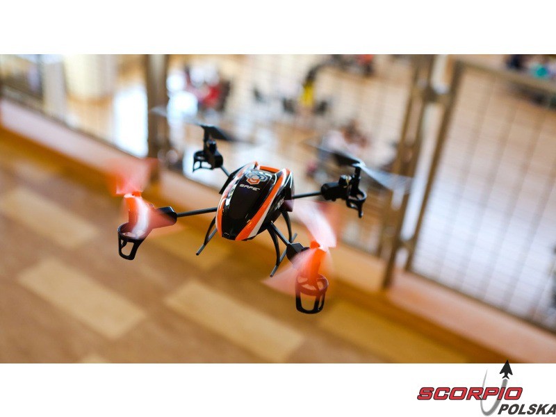 Na jednostce sterującej wyprowadzony jest 6 kanał w formacie wyjścia serwa. Do dronu można przymocować np. kamerkę i jej uruchomienie sterować właśnie z tego wyjścia. Tryb lotu wybiera się za pomocą przełącznika 5 kanału nadajnika.
