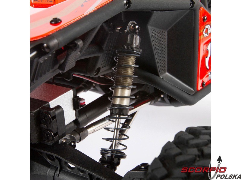 Wystarczającą moc do wspinania po skałach zapewnia silnik 540 35T. który posiada odpowiednio dobrane przełożenie z całkowitym stosunku 37:1. Stały napęd na sztywna oś przednia z zamkniętym dyferencjałem, podczas gdy tylna oś ma możliwość wyłączenia napędu, aby było możliwe wykonanie szybkiego nawrotu. Zawieszenia mają 4-punktowe wahacze, amortyzowane są aluminiowymi amortyzatorami z długim skokiem, od centralnej przekładni prowadzą do osi wały CVD.