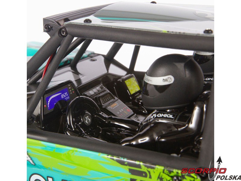 Zestaw zawiera kompletnie złożony model RC auta Axial Capra 1.9 w skali 1:10 z zainstalowanymi komponentami: Axial silnik szczotkowy 540 35T, Dynamite regulator AE-5L LED-port WP IC3, Spektrum serwo S614 MG WP 23T, Spektrum odbiornik SRX200 FHSS 2CH. Nadajnik Spektrum STX3 FHSS.