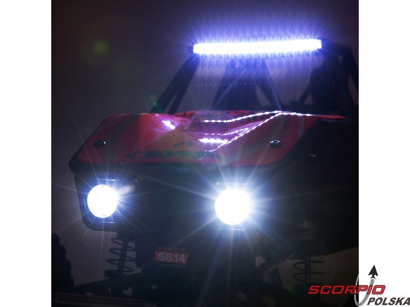 Listwa świetlna LED zamontowana na górnej części karoserii pomaga oświetlić drogę podczas późnych nocnych eskapadach. Listwa świetlna LED oraz dwa przednie światła LED są zawarte w zestawie.