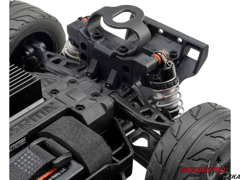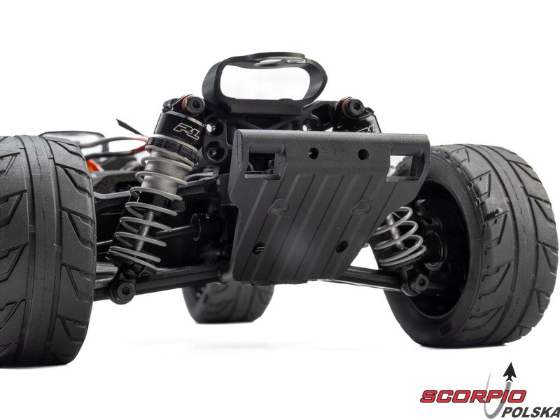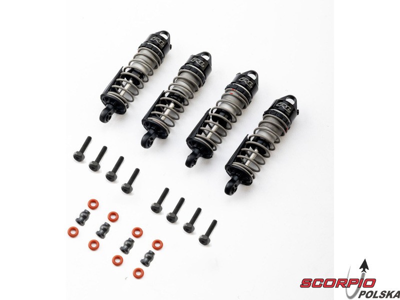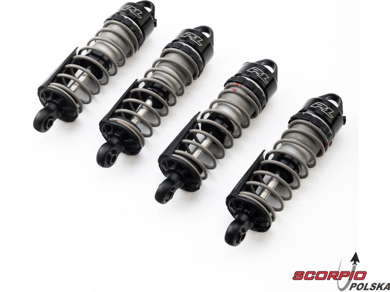 Aluminiowe korpusy i głowice amortyzatorów zapewniają wytrzymałość i płynną pracę, a wygrawerowane laserowo logo Pro-Line nadaje im ekskluzywny wygląd.