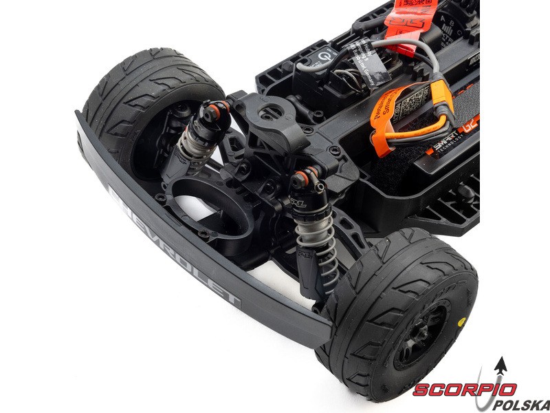 Pro-Line amortyzator PowerStroke (zestaw 4 szt.) – element tuningowy do modeli samochodów RC w skali 1:14–18 (Arrma Grom – Granite, Mojave, Typhon). Wysokiej jakości amortyzator o dużej wytrzymałości, z aluminiowym korpusem i nakrętką regulacyjną, zapewniający płynniejsze tłumienie i możliwość regulacji. 3 zestawy sprężyn o różnej twardości. Śruba odpowietrzająca. Wygrawerowane logo.