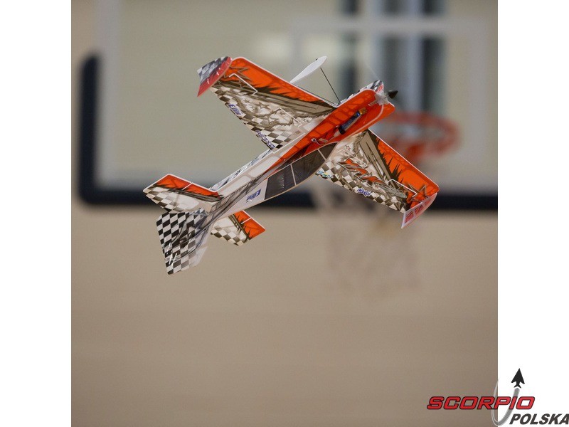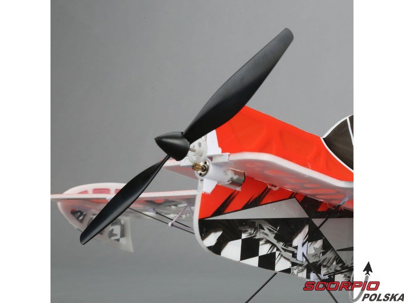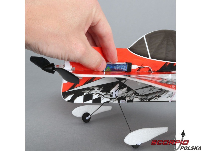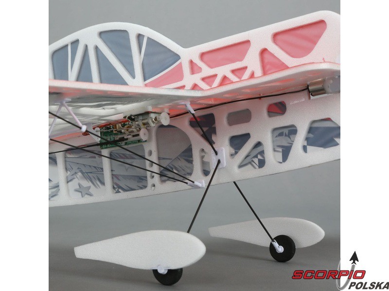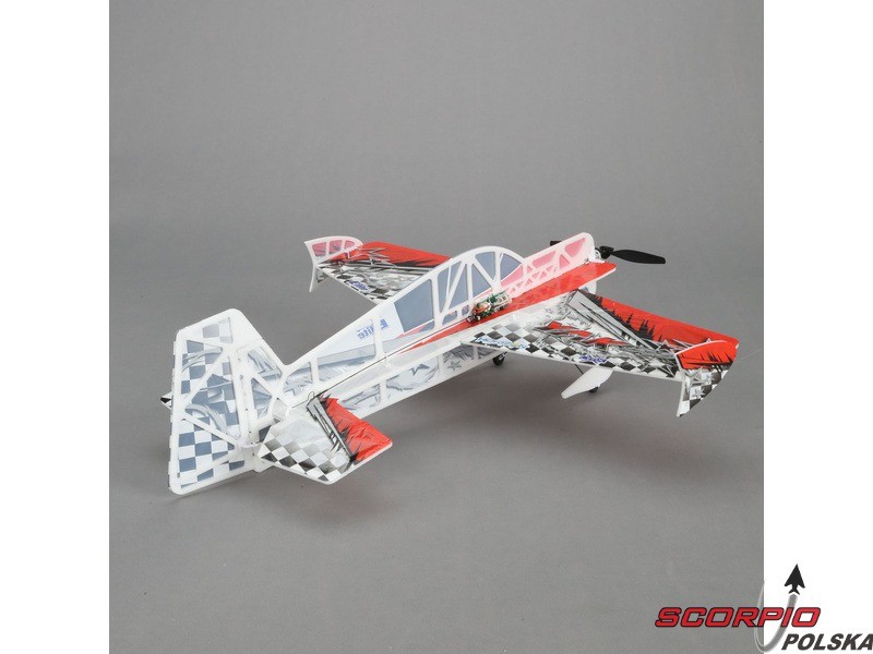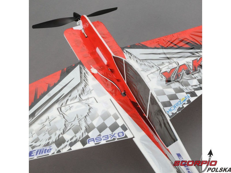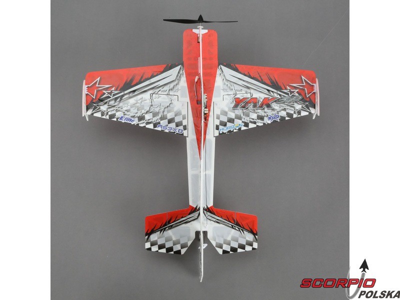 Halowy akrobacyjny RC model samolotu na zdalne sterowanie UMX Yak 54 3D ARF Konstrukcja wykonana jest z ażurowanego depronu, poszycie pomalowanym mikrofilmem, wzmocnienie z włókien węglowych. Wersja ARF bez wyposażenia RC.