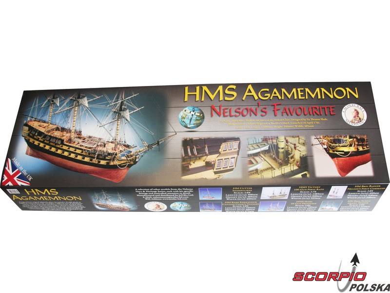 Zestaw do budowy modelu statku CALDERCRAFT H.M.S. Agamemnon 1793 w skali 1:64, który był jednym z najbardziej znanych statków brytyjskiej marynarki wojennej. W latach 1793-1796 był używany przez kapitana Nelsona, który zawsze określał go jako swój „ulubiony statek”. Do najważniejszych bitew należą bitwy pod Kopenhagą, Trafalgarem i Santo Domingo.