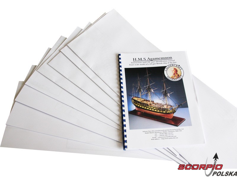 Zestaw do budowy modelu statku CALDERCRAFT H.M.S. Agamemnon 1793 w skali 1:64, który był jednym z najbardziej znanych statków brytyjskiej marynarki wojennej. Był używany w latach 1793-1796 przez kapitana Nelsona. Do najważniejszych bitew należą bitwy pod Kopenhagą, Trafalgarem i Santo Domingo.