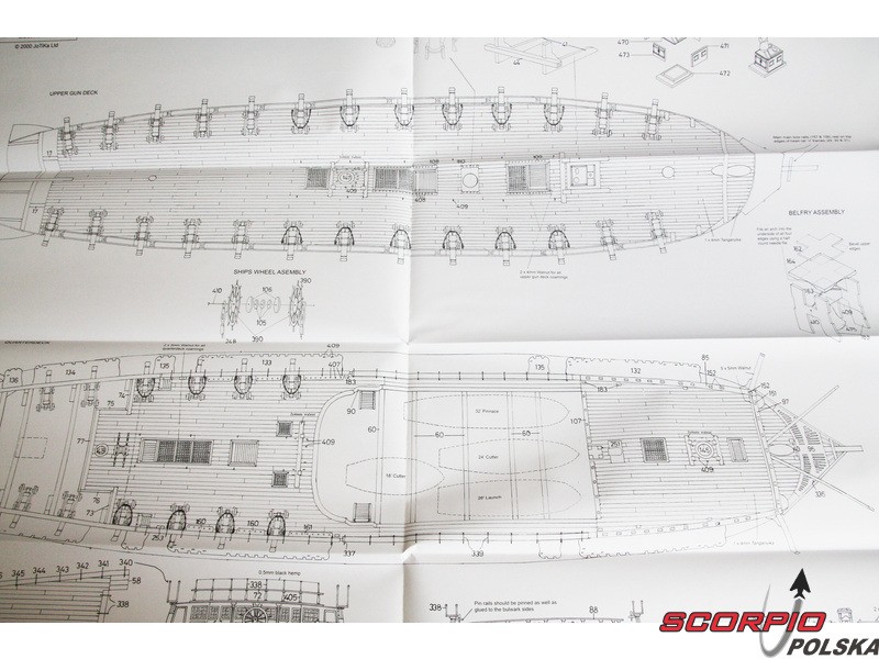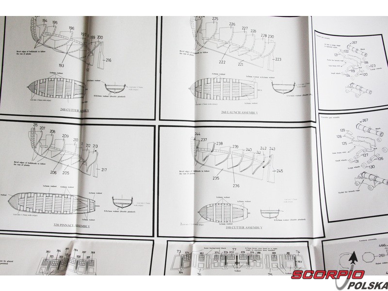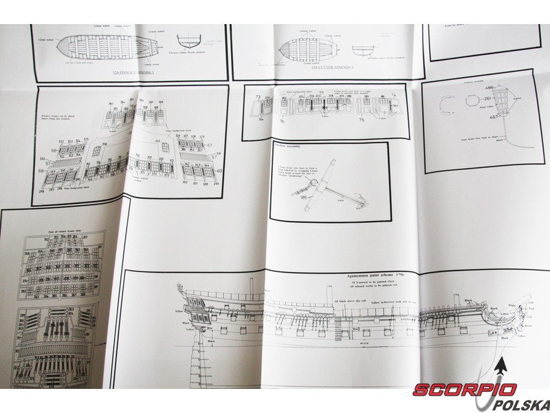 Zestaw zawiera kompletną dokumentację rysunkową modelu w skali 1:1 wraz z ilustracjami poszczególnych detali. Na rysunku przedstawiono w skali zespoły montażowe i ich kompletację. Wielojęzyczna instrukcja budowy w ogólnym zarysie reguluje logiczny montaż poszczególnych komponentów.