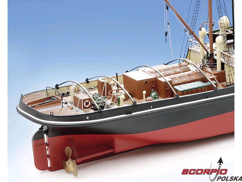 Zestaw do budowy modelu statku CALDERCRAFT Resolve to transoceaniczny holownik w skali 1:48, który oferuje bogate wyposażenie zestawu z wysokiej jakości detalami, szczegółowy kadłub z laminatu szklanego z nitowaniem, pokłady i nadbudówki wykonane na CNC. Zestaw do budowy modelu statku jest przeznaczony dla doświadczonych konstruktorów modeli statków. Model można zbudować jako statyczną makietę lub jako funkcjonalną makietę pływającą. Resolve to bogato wyposażony zestaw z laminowanym kadłubem, pokładami i nadbudówkami wyciętymi na maszynie CNC w wysokiej jakości, a do zestawu dołączono również wiele akcesoriów i detali makietowych. Pozwala to znacznie skrócić czas budowy. Jeśli chodzi o napęd, można wybrać między napędem elektrycznym a silnikiem parowym, jednak w przypadku tego modelu idealny jest silnik parowy. Dzięki silnikowi parowemu Victor Maxi Twin KR-22310 model jest bardzo dobrze zmotoryzowany, a płynność sterowania parą zapewnia wspaniały widok realistycznie pływającego modelu.