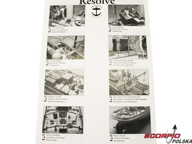 Zestaw do budowy modelu statku CALDERCRAFT Resolve to transatlantycki holownik w skali 1:48, który oferuje bogate wyposażenie zestawu z wysokiej jakości detalami, szczegółowy kadłub z laminatu szklanego z nitowaniem, pokłady i nadbudówki wykonane na CNC. Zestaw do budowy modelu statku jest przeznaczony dla doświadczonych modelarzy.