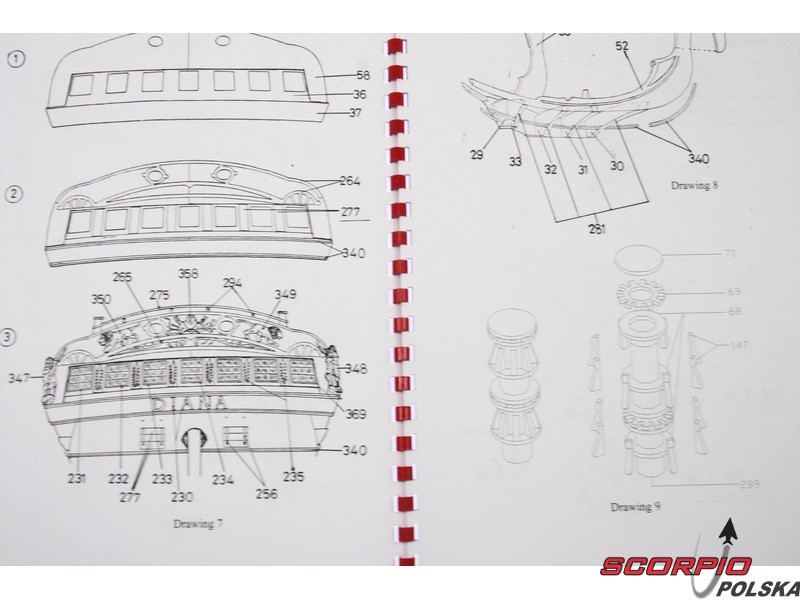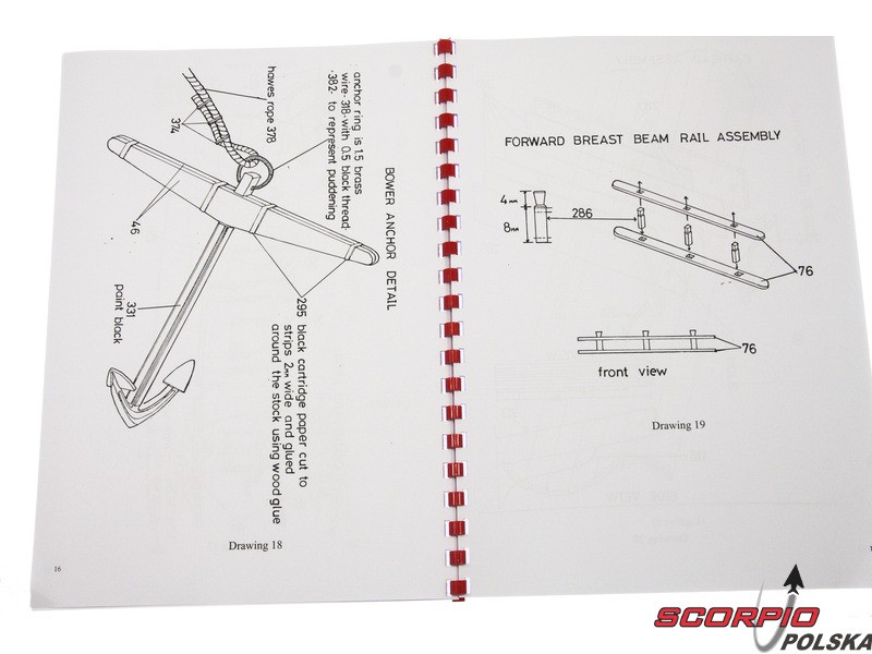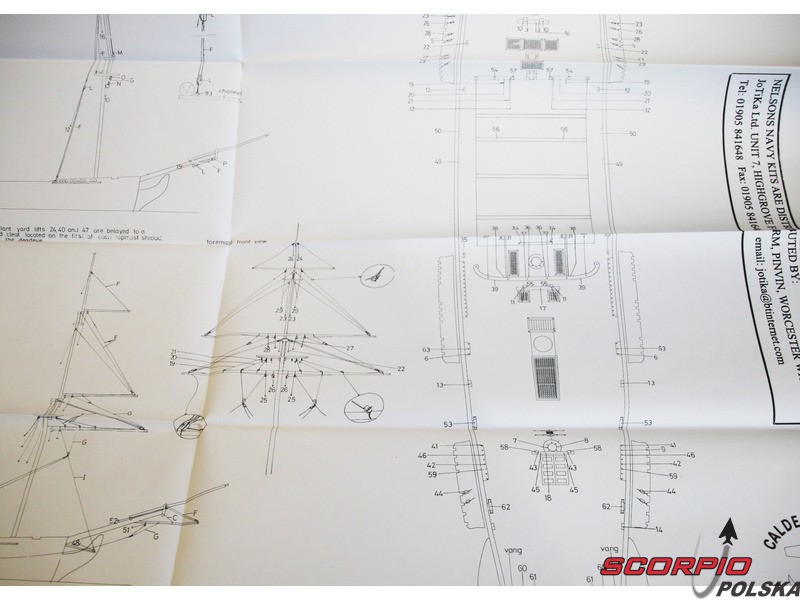 Zestaw zawiera kompletną dokumentację rysunkową modelu w skali 1:1 wraz z ilustracjami poszczególnych detali. Na rysunku w skali narysowano zespoły montażowe, ich kompletację, w tym maszty i bom, oraz sposób wiązania lin. Ilustrowana instrukcja budowy ogólnie określa logiczny sposób montażu poszczególnych elementów.