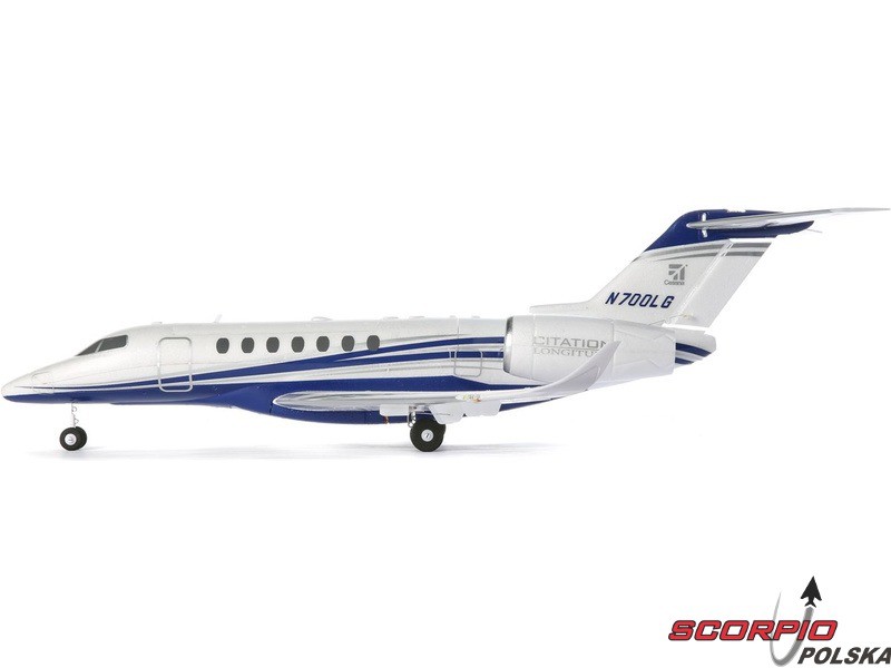 Model UMX™ Citation Longitude, który został opracowany według odrzutowego samolotu biznesowego i dyspozycyjnego Cessna, posiada oryginalne ubarwienie jak prawdziwa maszyna.