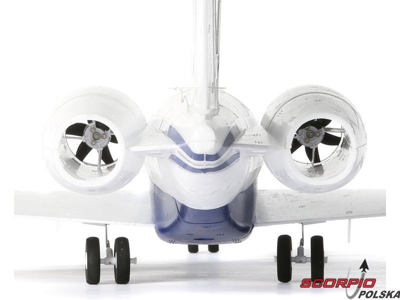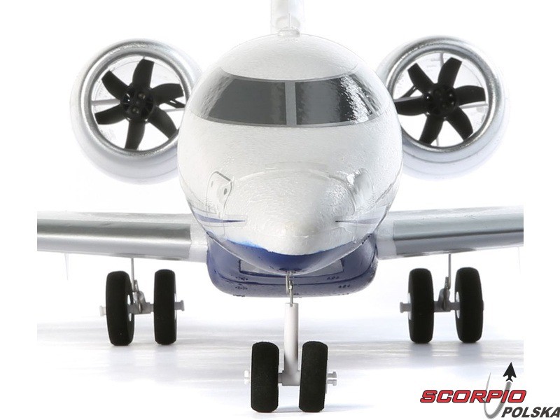W zestawie znajduje się złożony model E-flite Citation Longitude Twin 0,6m BNF Basic z zainstalowaną elektroniką: E-flite silnik trójfazowy 8800obr/V, Spektrum serwo liniowe 2.3g z długim skokiem i offsetem, Spektrum odbiornik AR6430R DSM2/DSMX 6CH Dual BL ESC oraz E-flite oświetlenie LED.