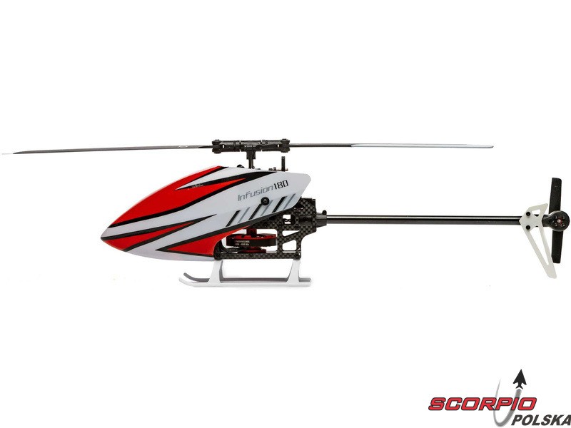 Zestaw zawiera kompletnie złożony model RC śmigłowca Blade InFusion 180 BNF, z zainstalowanymi komponentami: silnik trójfazowy 4004-650Kv Infusion 180, regulator Infusion 180, trójfazowy silnik ogonowy 1104-5500Kv Infusion 180, serwa cykliki SH2080 MG a jednostka sterująca Infusion 180.