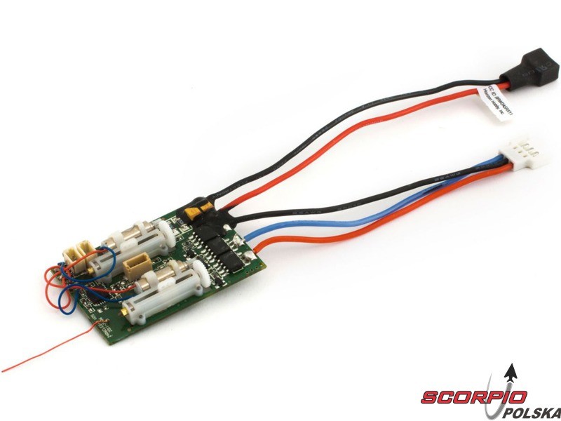 Ultra mikro odbiornik DSM2 ze zintegrowanym regulatorem trójfazowym oraz systemem AS3X dla mikro modeli E-Flite UMX Gee Bee R2 oraz Beast 3D. Z tym odbiornikiem kompatybilne są serwa SPMSA2030L.