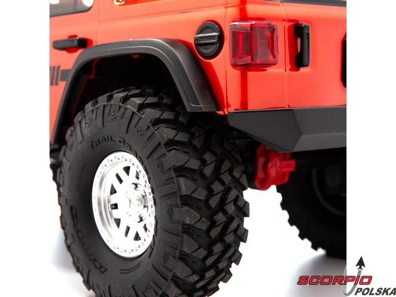 Opony S30 Nitto Trail Grappler S30, które są zamontowane na SCX10 ™ III Jeep® JLU Wrangler, są wyższe i szersze (4,74 x 1,7), co zwiększa prześwit podwozia i zapewnia lepszą przyczepność opon podczas jazdy w różnym terenie.