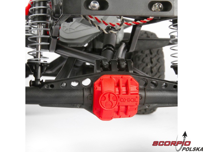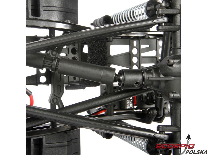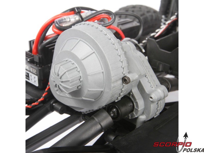 Model SCX10 II jest wyposażony w przekładnię, dostarczającą ogromna siłę wraz z wysokim momentem obrotowym. Elementem kompaktowej przekładni jest sprzęgło cierne, które zwiększa ochronę elementom napędu.