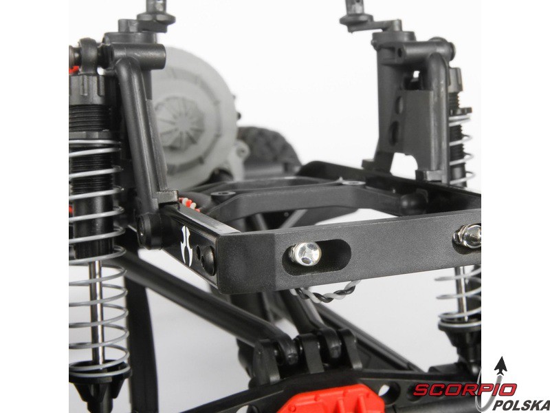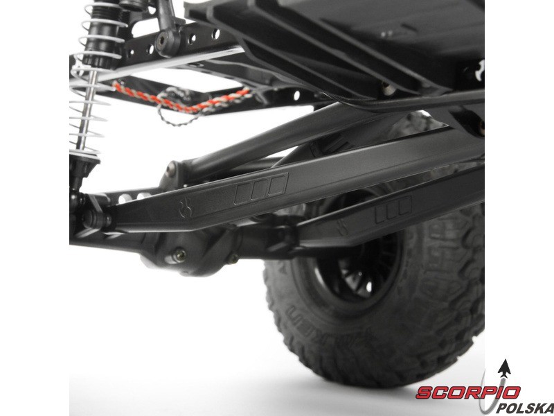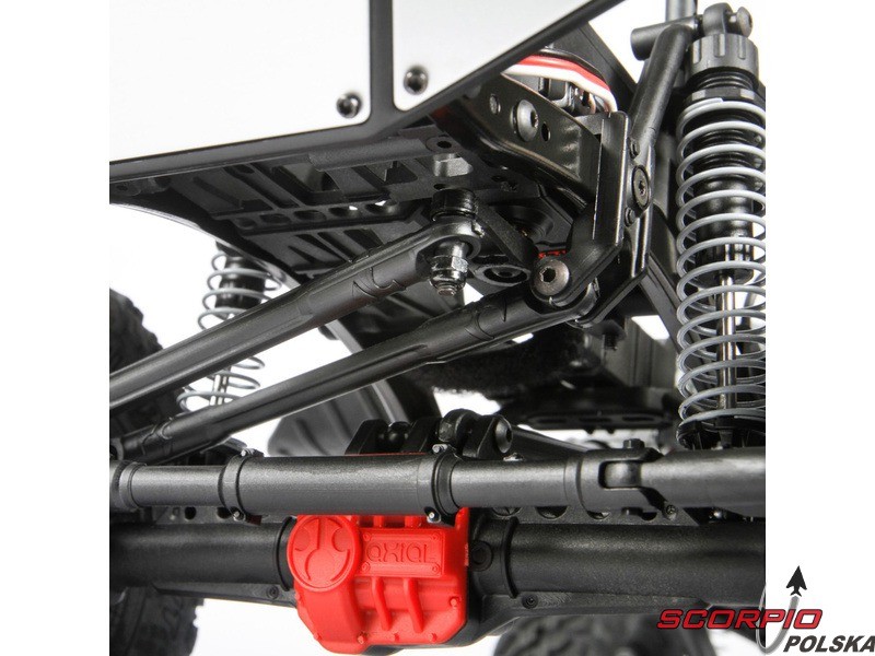 Konstrukcja podwozia SCX10 II została zaprojektowana z naciskiem na jak najbardziej realistyczny wygląd, perfekcyjne własności jezdne do pokonania przeszkód i zarazem maksymalną funkcjonalność.