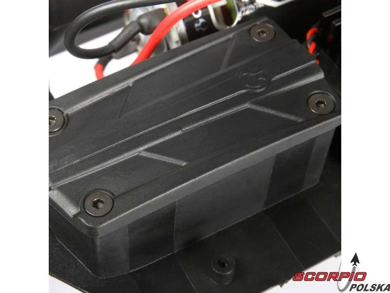 Akumulator ma w modelu dokładnie przeznaczone miejsce, aby zapewnić precyzyjne wyważenie auta. Akumulator ułożony jest w komorze, w przedniej części, aby ciężar był bardziej na przednich kołach, co ulepsza model pokonywanie przeszkód i ostrych podjazdów. Za pomocą ograniczników można dostosować wielkość przegrody do akumulatora.