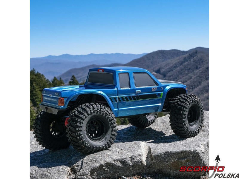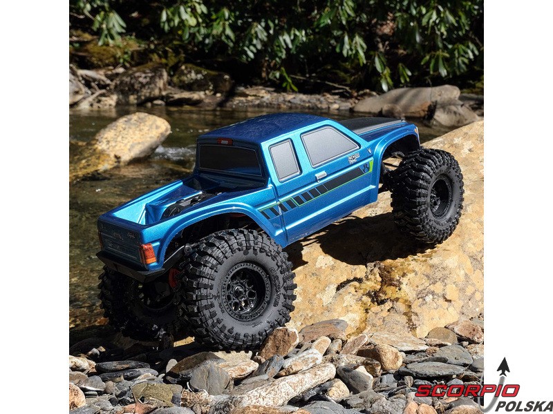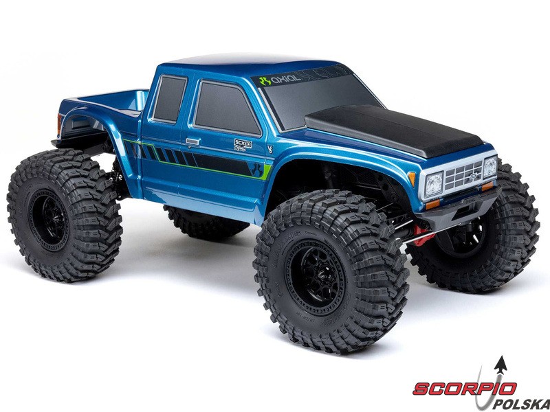 Ekspedycyjny model RC Axial Coyote 4WD, do jazdy w terenie i pokonywania przeszkód. Podwozie SCX10 III z mostami portalowymi, jednobiegową przekładnią i doskonałymi właściwościami jezdnymi. Amortyzatory olejowe, Overdrive (szybka jazda) na przedniej osi. Silnik szczotkowy, regulator 40A, 5-kanałowy odbiornik i 2-kanałowy nadajnik SLT2.