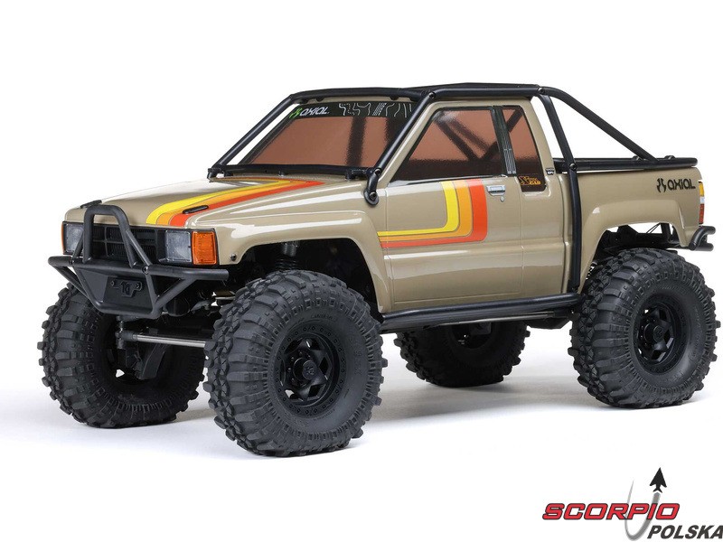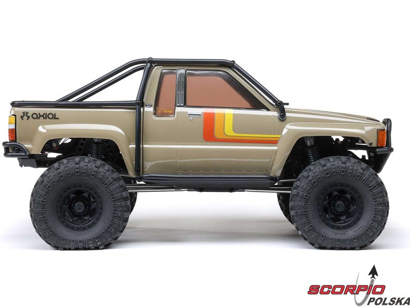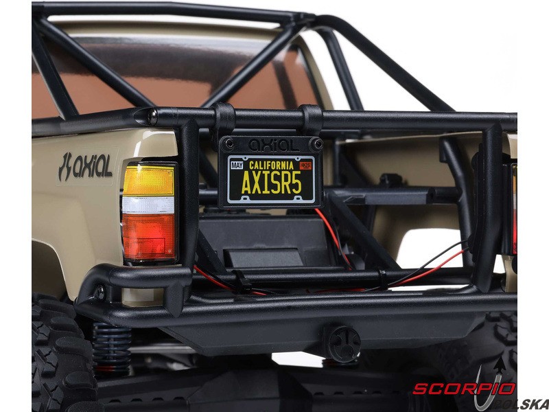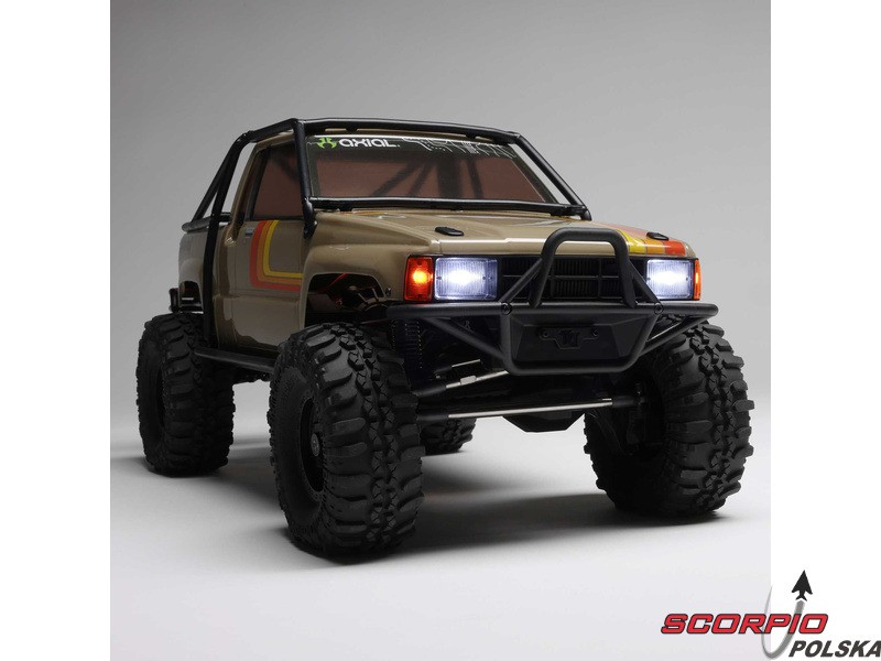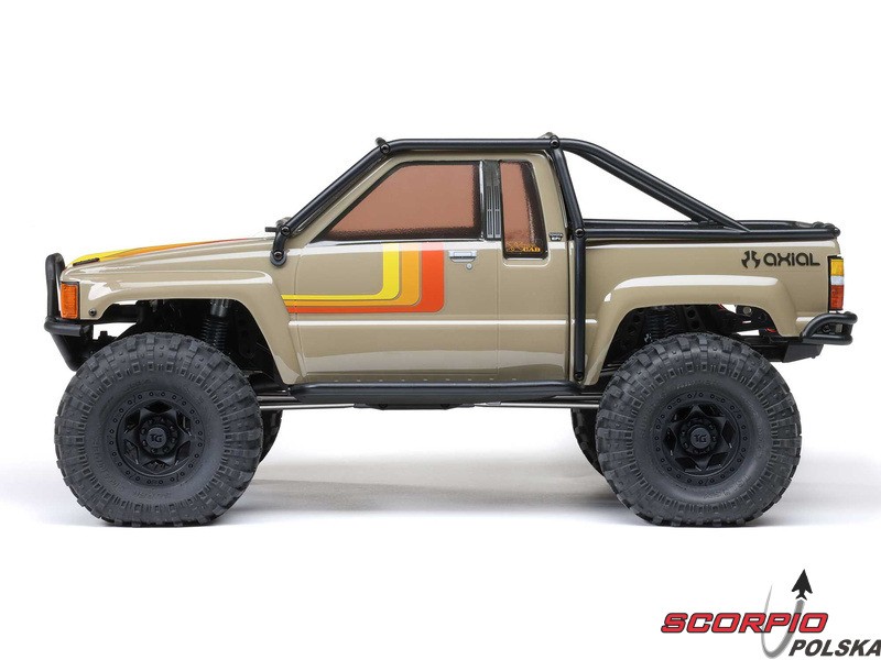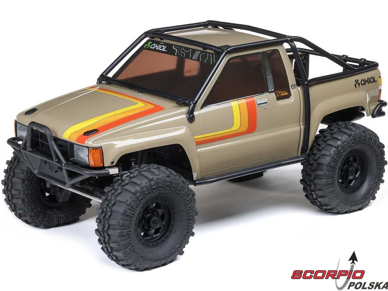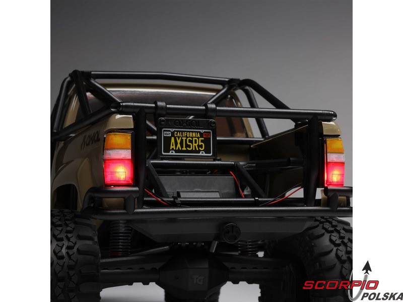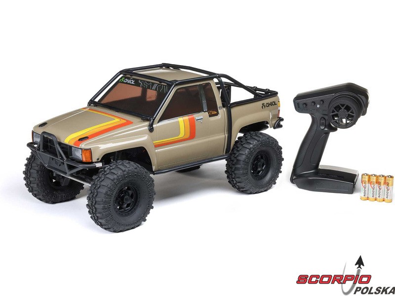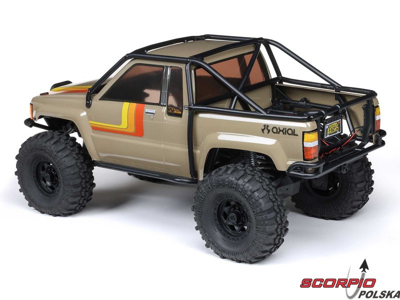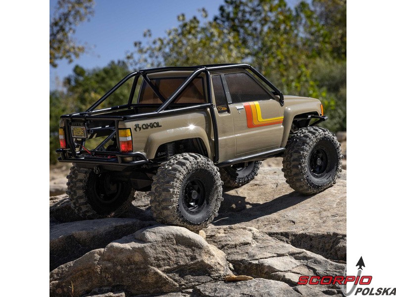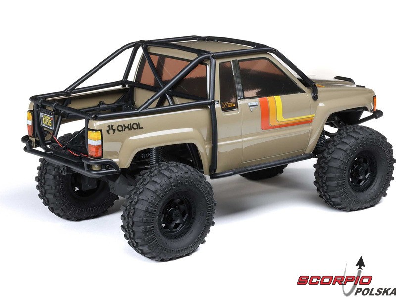 Popularna Toyota SR5 to kultowy pickup, który podbił wszystkie legendarne trasy terenowe. Dzięki temu marka Axial wybrała go jako swój pierwszy model RC Toyoty w skali 1:10. Oryginalny wygląd został dodatkowo uzupełniony elementami Trail-Gear, które są bardzo popularne wśród zawodników trailowych. Czyste linie modelu nie są zakłócane przez żadne klipsy dzięki bezspinkowemu systemowi mocowania. Napęd modelu zapewnia silnik szczotkowy i regulator Spektrum 40A. Pięciokanałowy odbiornik jest sterowany trzykanałowym nadajnikiem SLT3, więc decydując się na sterowanie modelem za pomocą uniwersalnego nadajnika Spektrum, na przykład DXC+ (sprzedawanego oddzielnie), pozostaną jeszcze wolne kanały do uzupełnienia o dodatkowe funkcje. Aby zapewnić precyzyjną jazdę, do sterowania wykorzystano cyfrowe serwo z metalowymi przekładniami. Funkcja DIG jest również sterowana przez mniejsze serwo z metalowymi zębatkami.