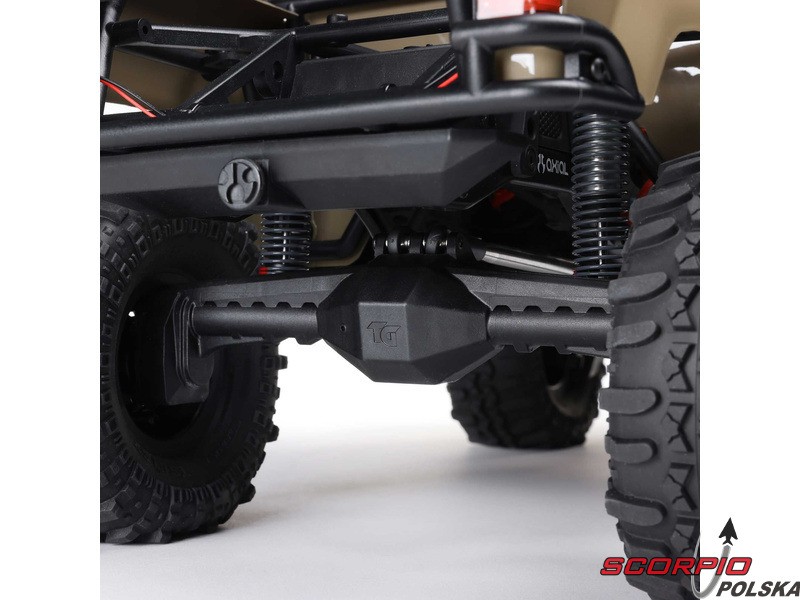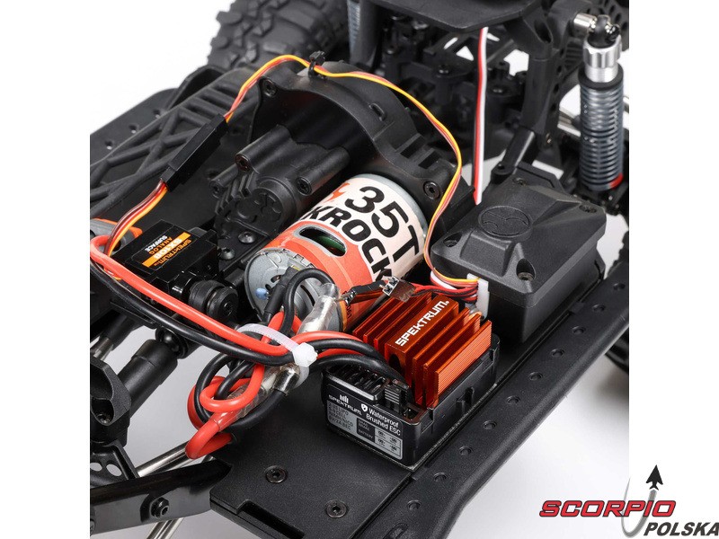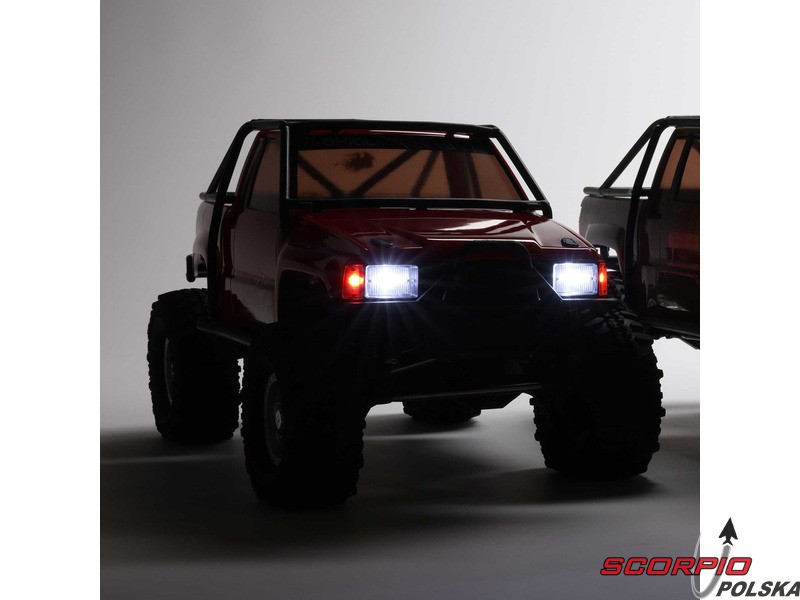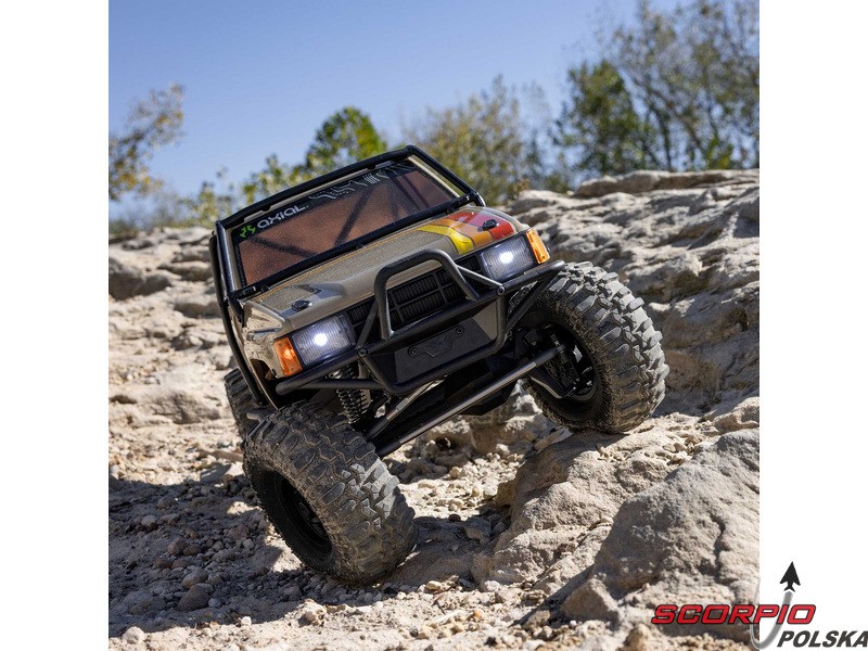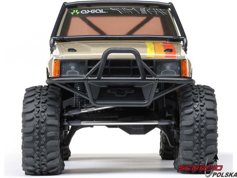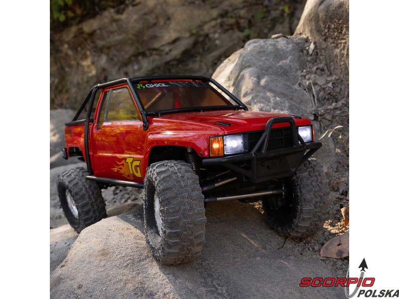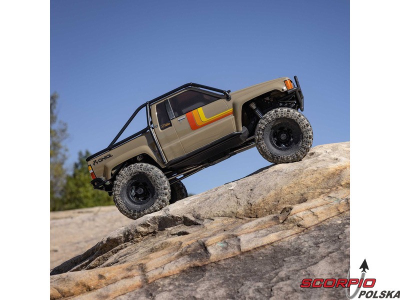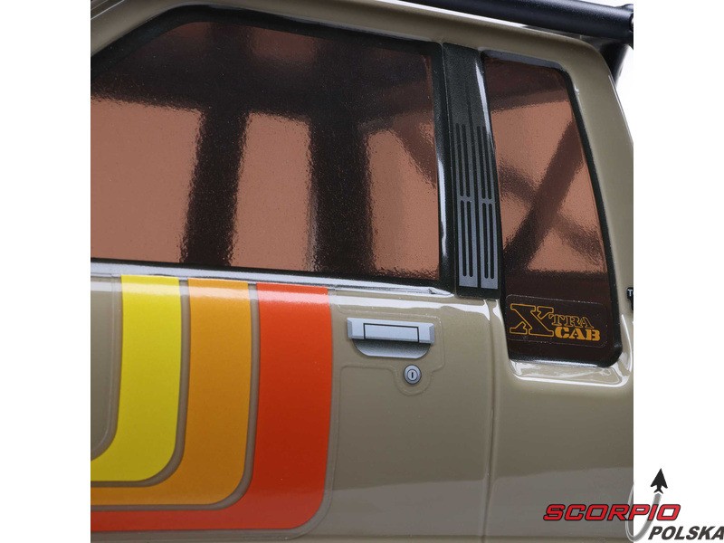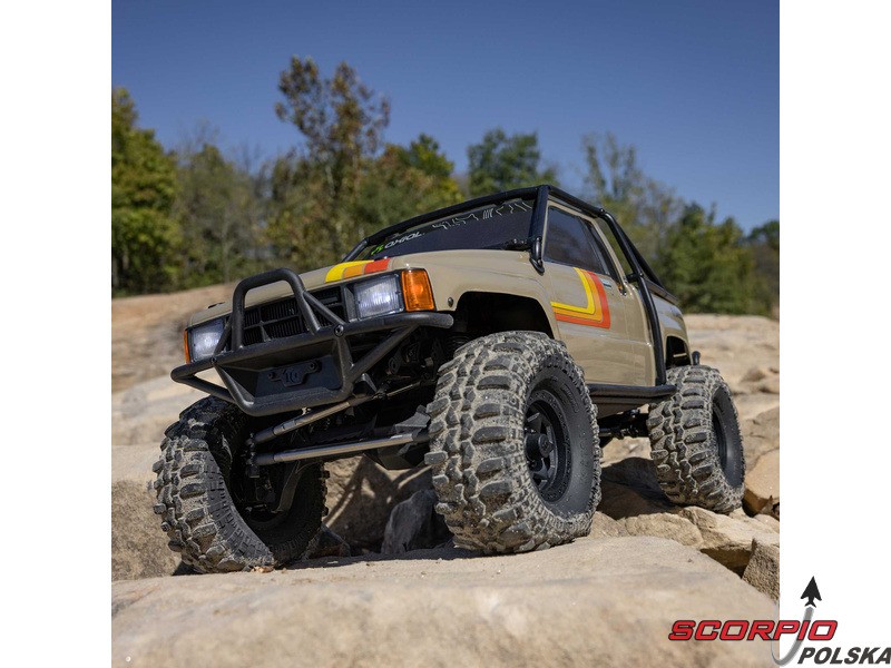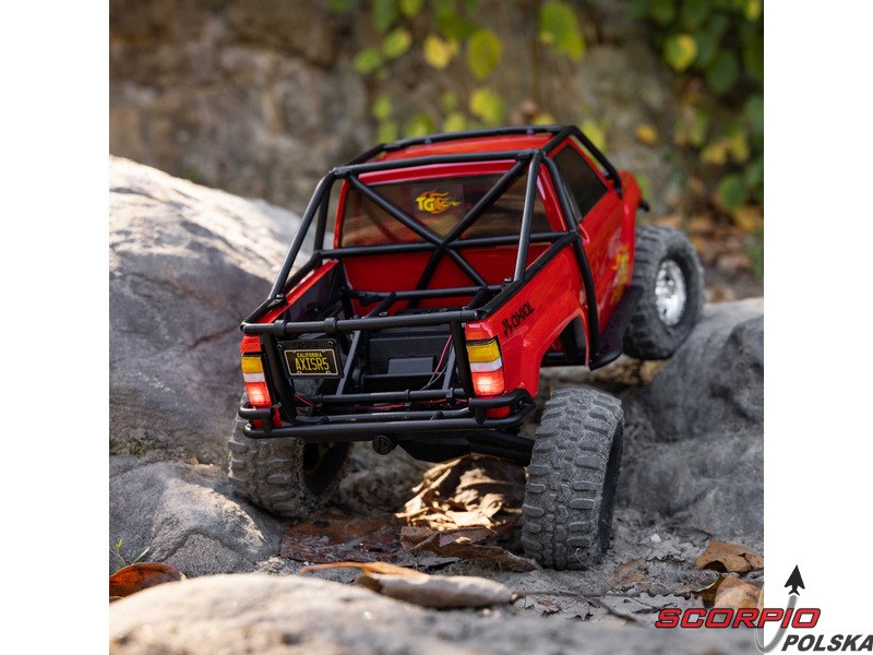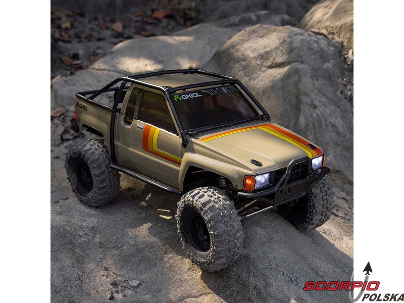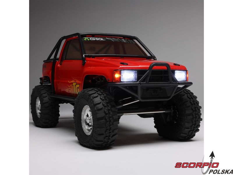 Popularna Toyota SR5 to kultowy pickup, który podbił wszystkie legendarne trasy terenowe. Dzięki temu marka Axial wybrała go jako swój pierwszy model RC Toyoty w skali 1:10. Oryginalny wygląd został dodatkowo uzupełniony elementami Trail-Gear, które są bardzo popularne wśród zawodników trailowych. Czyste linie modelu nie są zakłócane przez żadne klipsy dzięki bezspinkowemu systemowi mocowania. Napęd modelu zapewnia silnik szczotkowy i regulator Spektrum 40A. Pięciokanałowy odbiornik jest sterowany trzykanałowym nadajnikiem SLT3, więc decydując się na sterowanie modelem za pomocą uniwersalnego nadajnika Spektrum, na przykład DXC+ (sprzedawanego oddzielnie), pozostaną jeszcze wolne kanały do uzupełnienia o dodatkowe funkcje. Aby zapewnić precyzyjną jazdę, do sterowania wykorzystano cyfrowe serwo z metalowymi przekładniami. Funkcja DIG jest również sterowana przez mniejsze serwo z metalowymi zębatkami.