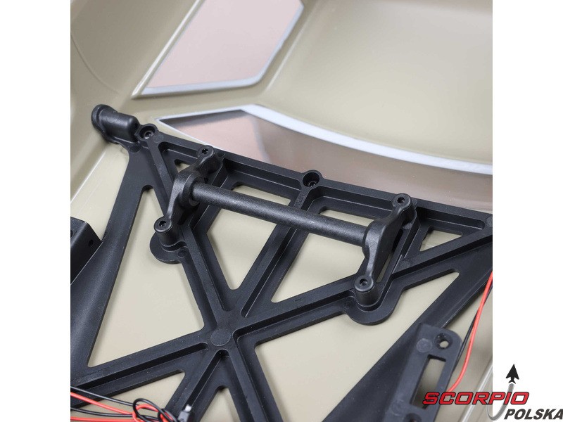 Zainstalowana jest prosta i niezawodna elektronika z wodoodpornym* regulatorem 40 A, silnikiem szczotkowym, dwoma cyfrowymi serwomechanizmami z metalowymi przekładniami i 5-kanałowym odbiornikiem z 3-kanałowym nadajnikiem.