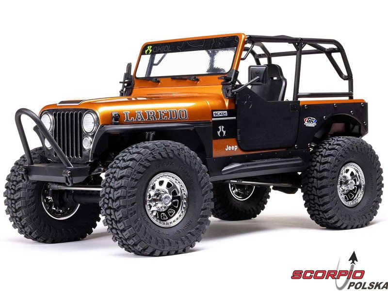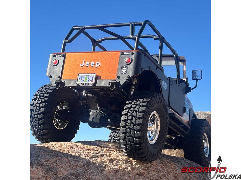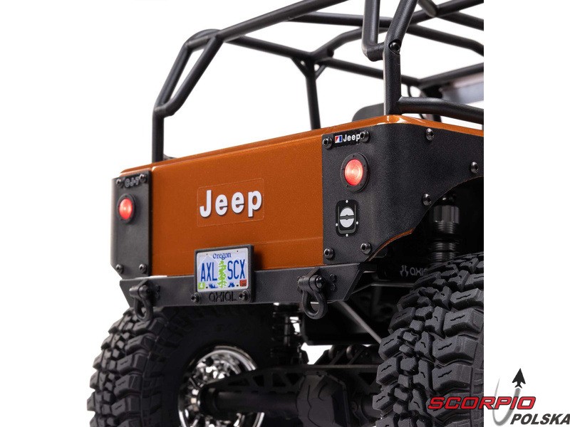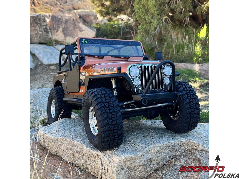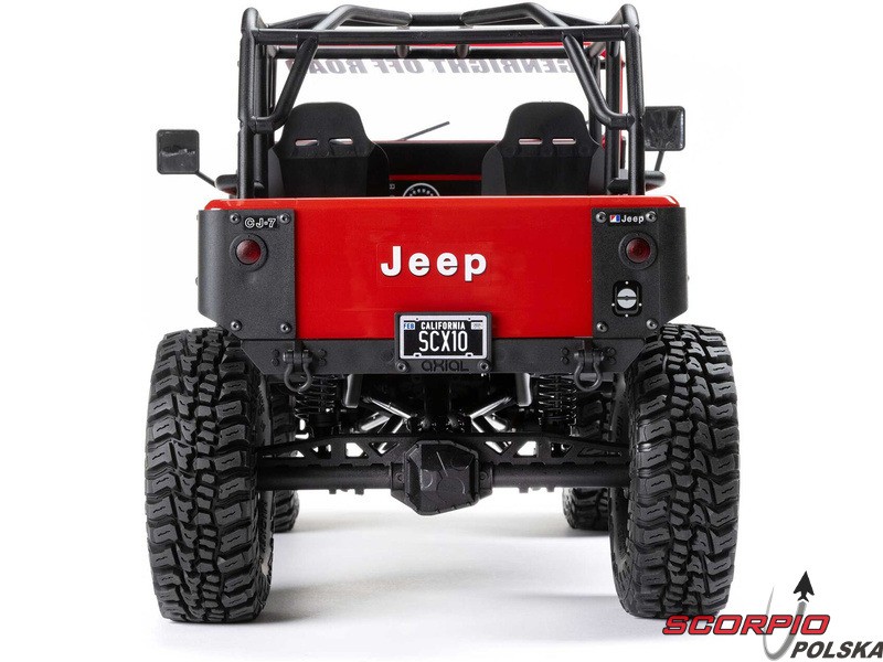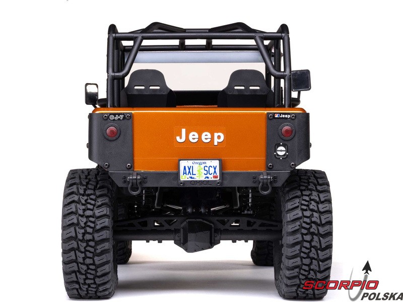 Legendarny amerykański jeep – Jeep CJ‑7, jako licencjonowany model RC marki Axial na sprawdzonym podwoziu SCX10 III. Karoseria jest autentycznie wykonana, wraz z przednią maską, przezroczystymi szybami, wycieraczkami, lusterkami i ramą, dzięki czemu jest to w rzeczywistości funkcjonalna półmakieta. Wnętrze zawiera fotele, kierownicę, deskę rozdzielczą oraz otwierany schowek w podłokietniku. Otwierane są również drzwi, które w razie potrzeby można zdemontować, aby uzyskać wygląd pojazdu z otwartym nadwoziem. Przednie reflektory i kierunkowskazy są wyposażone w diody LED. Model jest zbudowany na platformie podwozia SCX10 III z metalową ramą, wielopunktowym zawieszeniem, bezpośrednimi osiami AR45, amortyzatorami olejowymi oraz zdalnie sterowaną specjalną funkcją DIG do gwałtownych zjazdów i skręcania w miejscu.