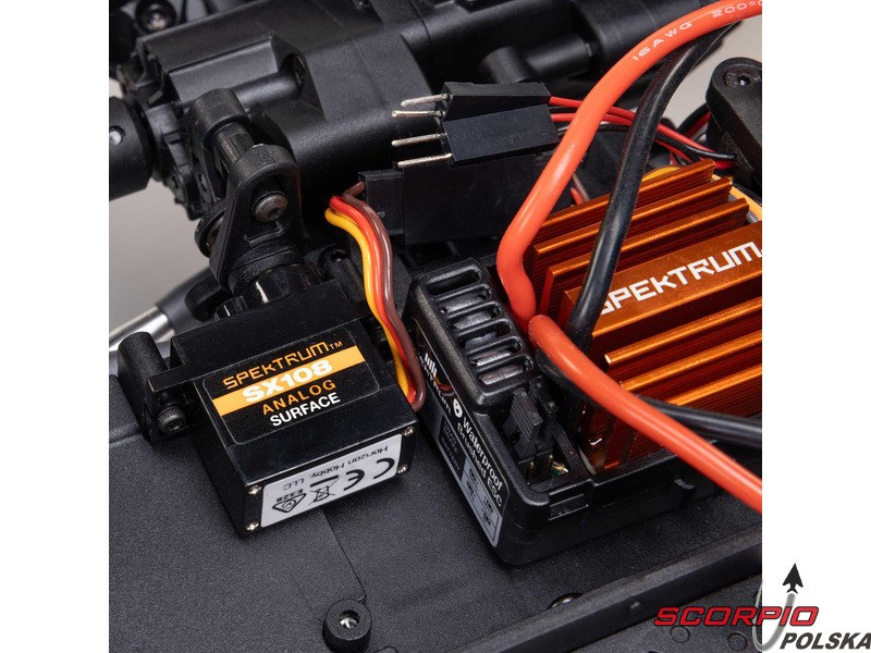 Elektronika i jednostka napędowa obejmują silnik Axial 35T serii 540, regulator Spektrum Smart Firma 40A, oddzielny 5-kanałowy odbiornik z protokołem DSMR/SLT oraz 3-kanałowy nadajnik SLT3.