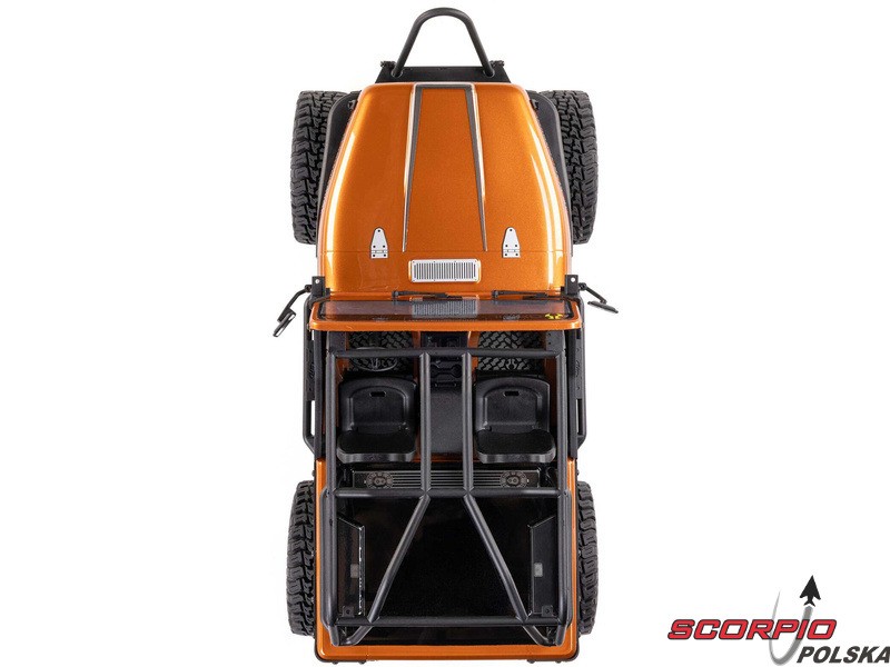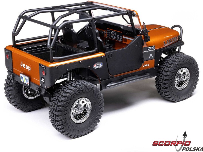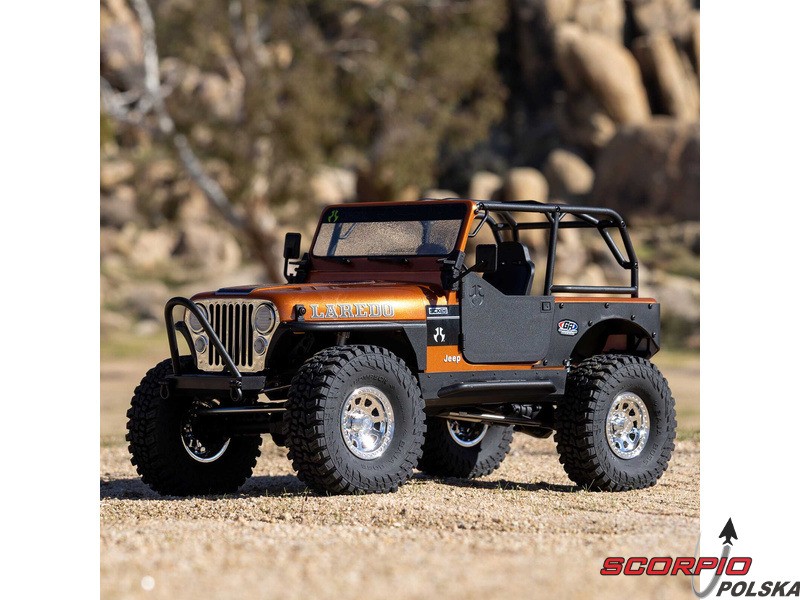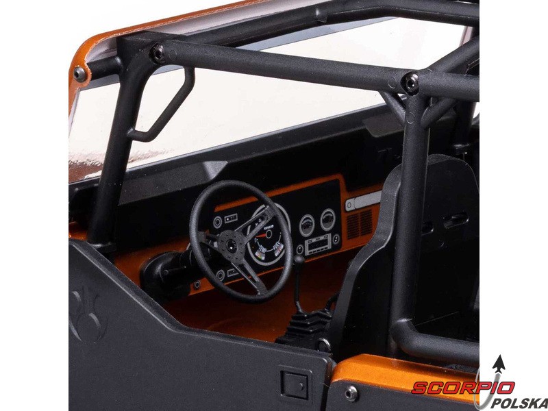 Legendarny amerykański jeep Jeep CJ‑7, jako licencjonowany model RC firmy Axial na sprawdzonym podwoziu SCX10 III. Model posiada metalową ramę, wielopunktowe zawieszenie, bezpośrednie osie AR45, aluminiowe amortyzatory olejowe oraz funkcję DIG. Szczegółowa karoseria i wnętrze. Nowa elektronika Spektrum.