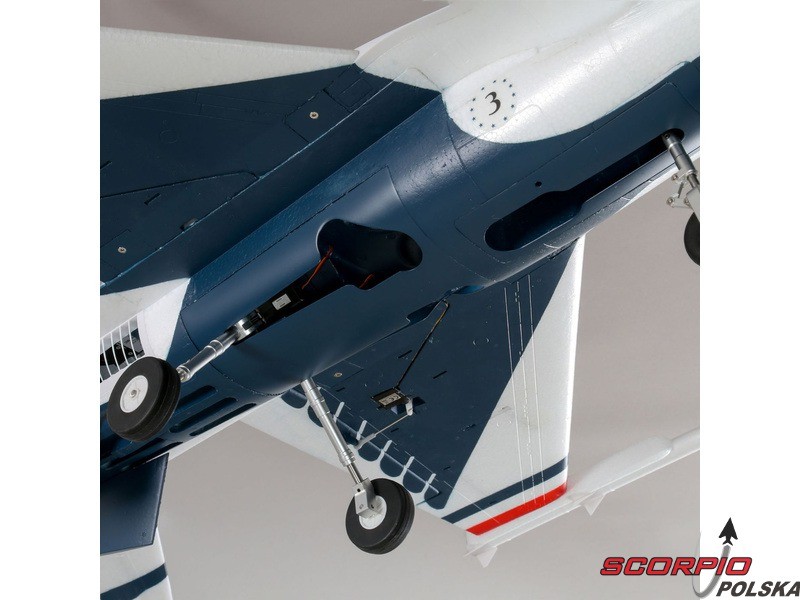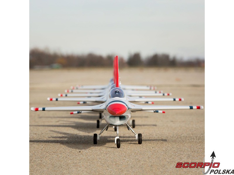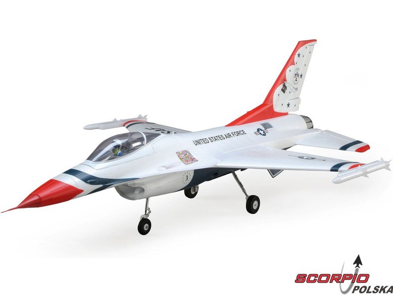 Model RC znanego amerykańskiego samolotu F-16 w ubarwieniu Thunderbirds. Wyśmienite własności lotne, chowane elektryczne podwozie z amortyzacją, zainstalowany napęd EDF 70mm z trójfazowym silnikiem i regulatorem oraz cyfrowe serwa. Należy uzupełnić własną aparaturę RC oraz akumulator.