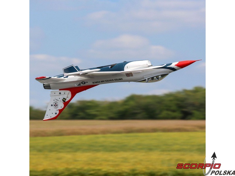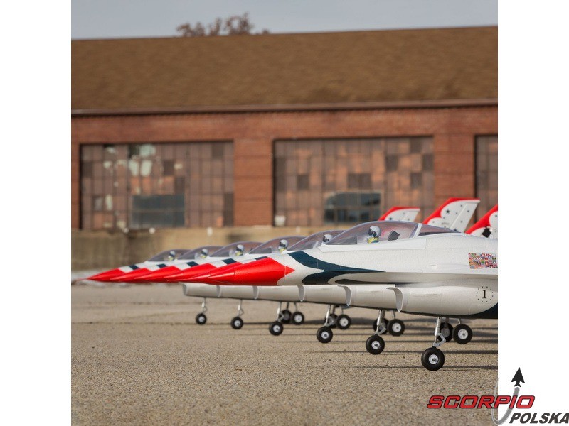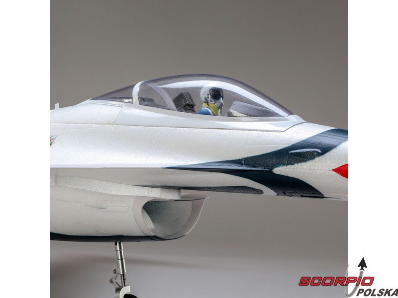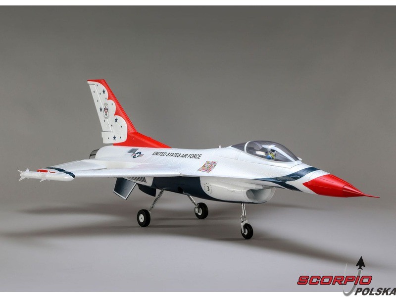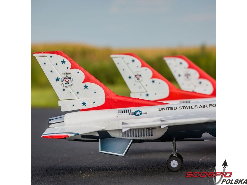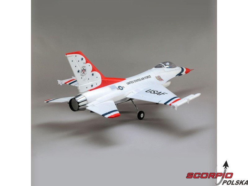 Myśliwiec odrzutowy General Dynamics (dzisiaj Lockheed Martin) F-16 jest jednym z najbardziej uznanych i najbardziej udanych współczesnych jednosilnikowych myśliwców na świecie. O jego jakości świadczy to, że został wcielony do wielu armii oraz wyprodukowano ponad 4500 sztuk. Jego niesamowita moc i możliwości są dowodem, dlaczego znalazł się w słynnej na całym świecie amerykańskiej drużynie lotniczej Thunderbirds pokazującej go na pokazach lotniczych na całym świecie. Model od E-flite® F-16 Thunderbirds jest repliką, która oferuje wysoką wydajność i jednocześnie jest prosty w pilotażu.