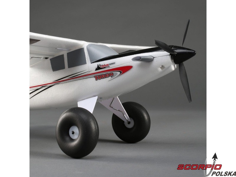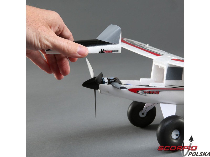 Mikro model RC na zdalne sterowanie UMX Turbo Timber BNF Basic z 3-osiową stabilizacją AS3X i technologią SAFE Select (Sensor Assisted Flight Envelope), z którym sterowanie modelu jest prostsze. Mocniejszy silnik trójfazowy, 3-łopatowe śmigło, zainstalowane oświetlenie LED. Sloty z klapami dla skrócenia startu i lądowania, duże balonowe koła. Jednostka sterująca w modelu dostarcza telemetrię - napięcie zasilania i prąd płynący przez silnik.