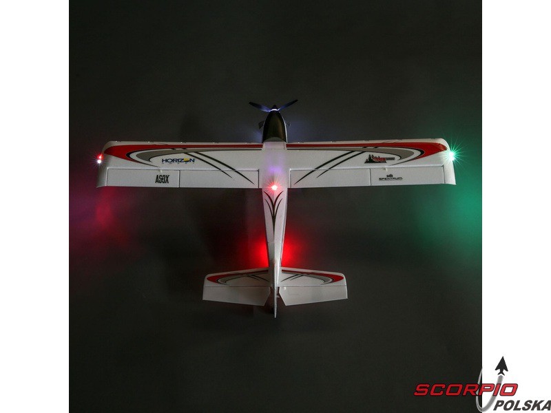 Model jest kompletnie przygotowany do lotu, ma zainstalowany silnik z regulatorem, serwa i odbiornik. Wyposażony jest w zaawansowaną technologię Spektrum® 2,4GHz, która umożliwia sparowanie modelu w własnym 6+ kanałowym nadajnikiem Spektrum, DSMX® / DSM2®, także można udać się latać w jak najkrótszym czasie po wypakowaniu.