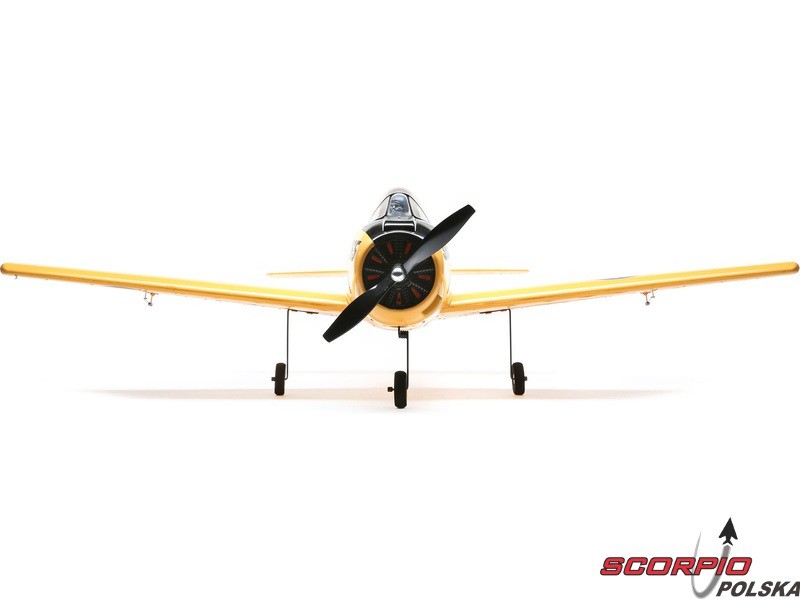 W zestawie znajduje się model samolotu E-flite® T-28 Trojan 1.1m z zainstalowanymi elementami: silnik trójfazowy 3226-930Kv, regulator trójfazowy 30A z telemetrią, 2xSpektrum serwo A382 13g MG, kabel 24cm, 2x Spektrum serwo A381 9g Mini, kabel 40cm. Podwozie z kołami, zapasowe śmigło.