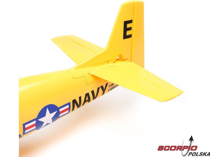Do montażu końcowego nie jest potrzebny klej, więc można mieć swojego T-28 Trojana 1.1m gotowego do lotu w czasie krótszym niż czas potrzebny na naładowanie akumulatora! I choć zmieści się w prawie każdym bagażniku samochodowym, można zdjąć skrzydło w celu jeszcze łatwiejszego przechowywania i transportu.