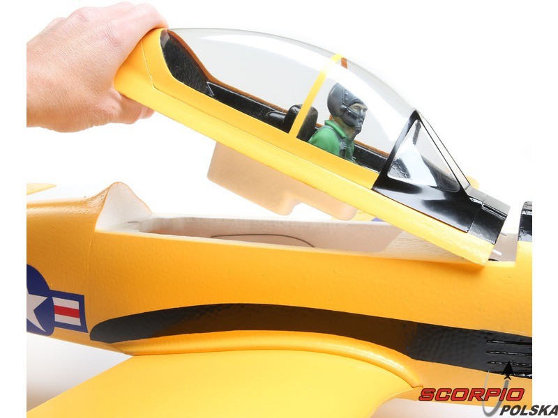 Makietowość modelu wzbogaca efektowny i wykończony kokpit, który wyposażony jest w figurkę pilota, fotel i kokpit. Kokpit zamontowany jest na odchylanej pokrywie kadłuba.