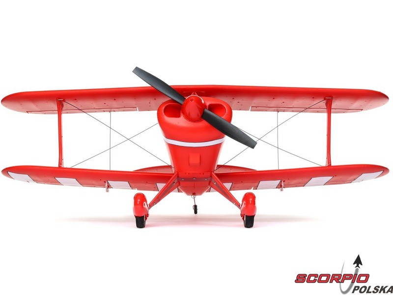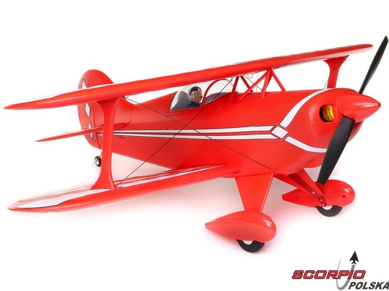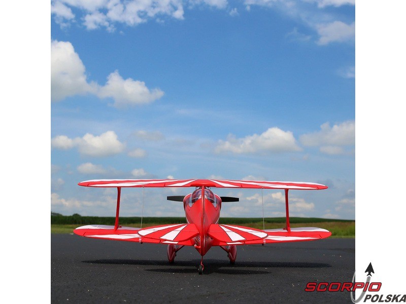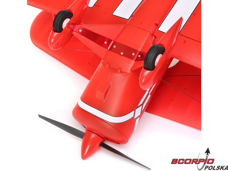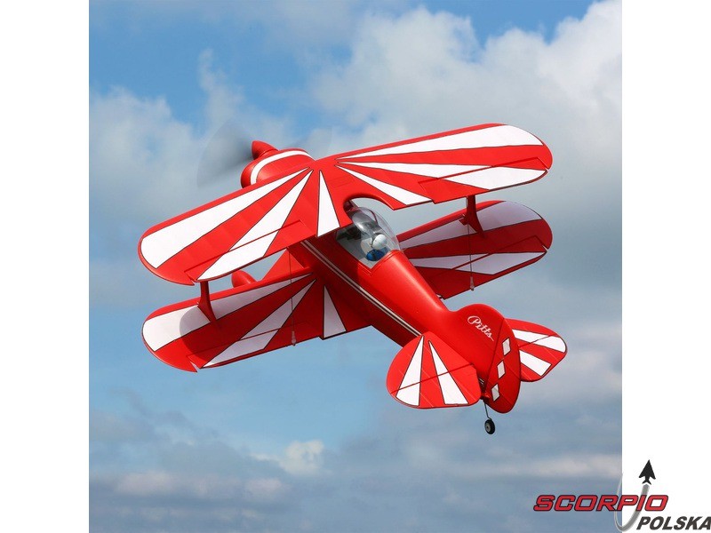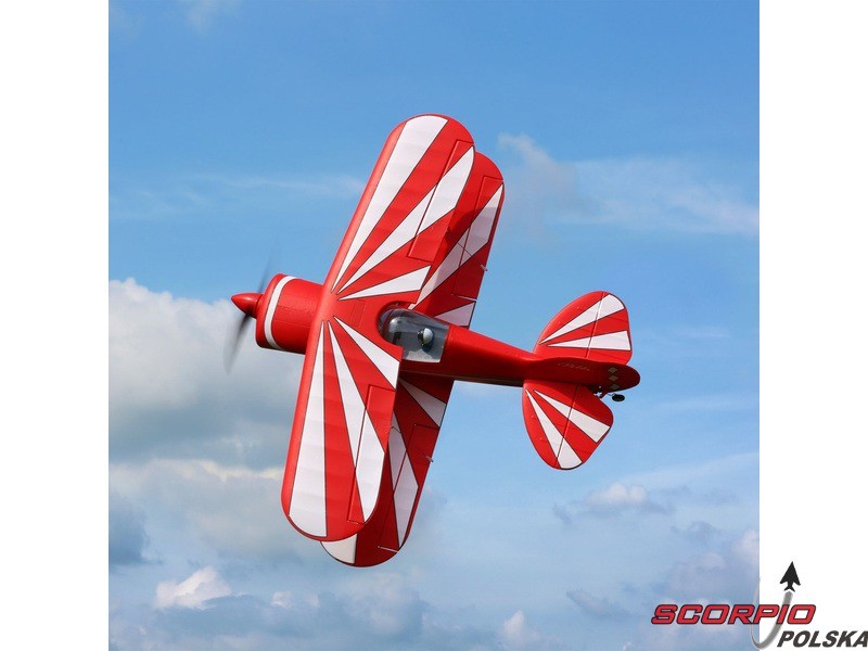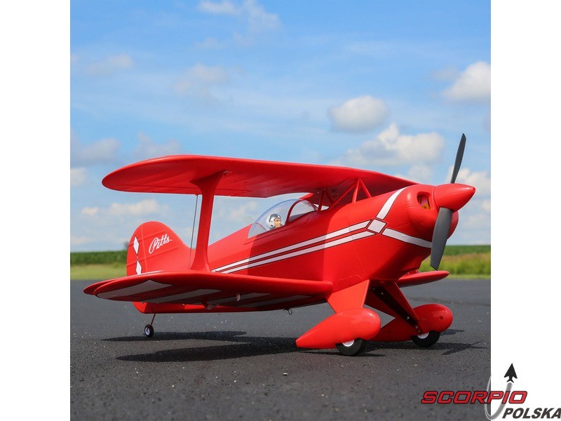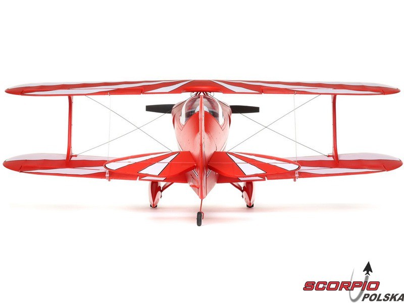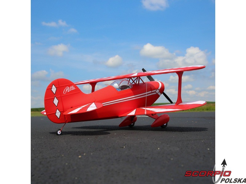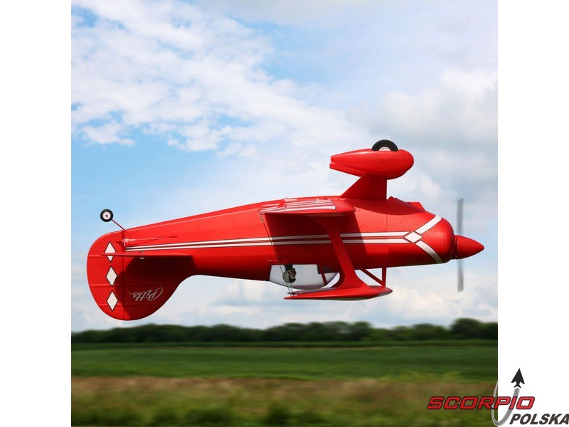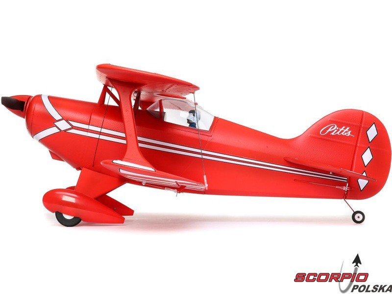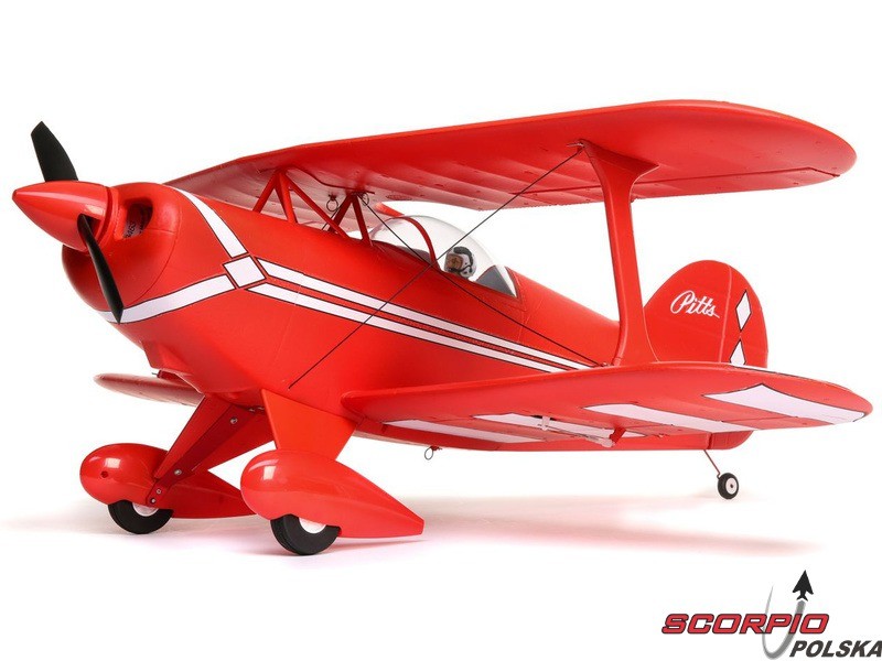 Amerykańska legenda akrobacyjna Pitts S-1S o rozpiętości 850mm napędzana jest silnikiem trójfazowym BL15 Brushless Outrunner i regulatorem 40A. Wyposażony jest w 6 kanałowy odbiornik AR631 z technologią AS3X oraz opcjonalną funkcję SAFE Select oraz telemetrią. Wykonanie BNF bez akumulatora, nadajnika i ładowarki.
