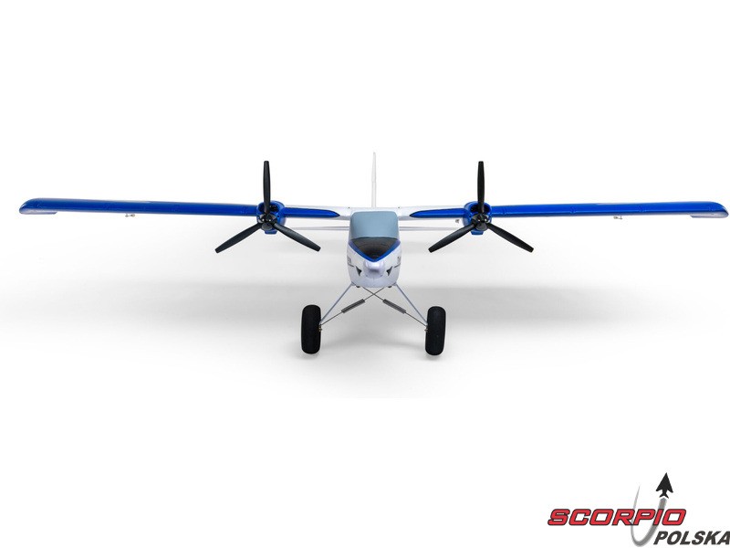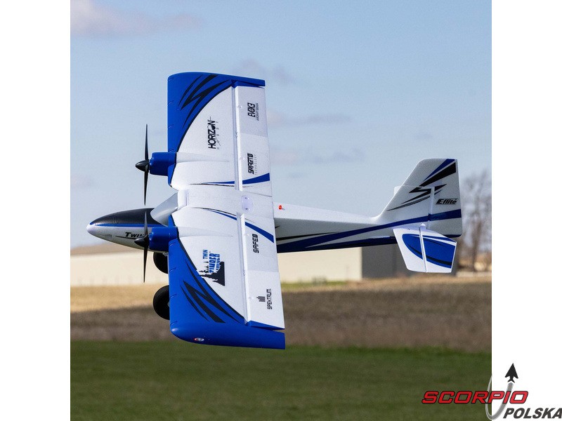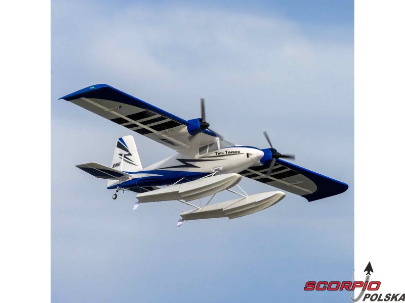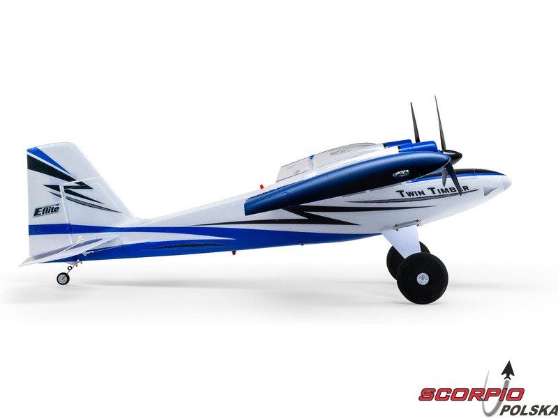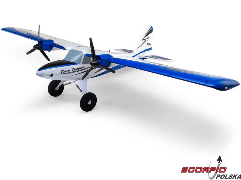 Model RC dwusilnikowego samolotu E-flite Twin Timber PNP o rozpiętości skrzydeł 1,6 m, napędzany parą silników trójfazowych z podwójnym regulatorem. Model ma możliwości akrobacyjne, klapy i opcjonalne sloty do krótkiego startu i lądowania. Wersja PNP bez odbiornika i akumulatorów 3S - 4S LiPol.