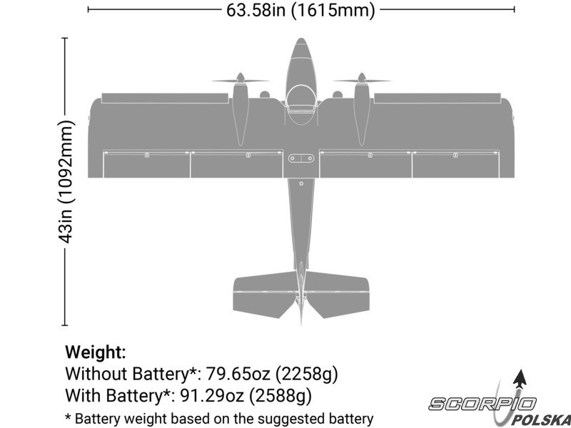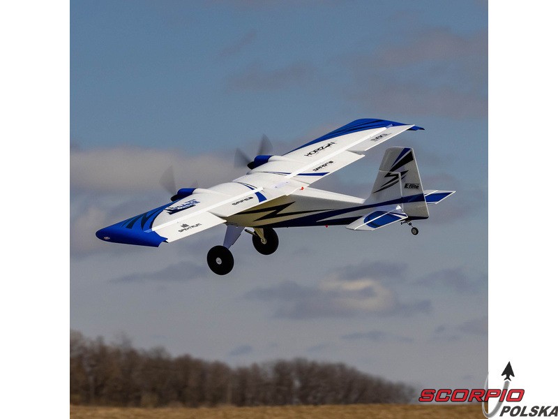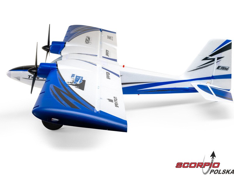 E-flite Twin Timber wykorzystuje wszystkie popularne funkcje z poprzednich modeli Timber, takie jak podwozie amortyzujące wstrząsy z ponadwymiarowymi kołami w stylu Tundra, opcjonalne zastosowanie slotów na krawędziach natarcia, funkcjonalne klapy aerodynamiczne i oświetlenie LED ze światłami do lądowania, nawigacyjnymi i błyskowymi. Twin Timber 1.6m ma również dużą górną pokrywę umożliwiającą szybką i łatwą wymianę akumulatora. Ponadto jest wyposażony w najmocniejsze podwozie zainstalowane do tej pory w Timber, poprawiając trwałość i zdolność do STOL podczas lotu w trudnym terenie! Wydajne podwójne silniki bezszczotkowe są kompatybilne z akumulatorami LiPol 3S i 4S i są podłączone do ekskluzywnego podwójnego regulatora Spektrum™ Avian™ Dual Smart 40A, który może również dostarczać szereg danych telemetrycznych systemu zasilania w czasie rzeczywistym zarówno z akumulatorami SMART, jak i konwencjonalnymi, za pośrednictwem kompatybilnych odbiorników i nadajników Spektrum wyposażonych w Spektrum AirWare™.