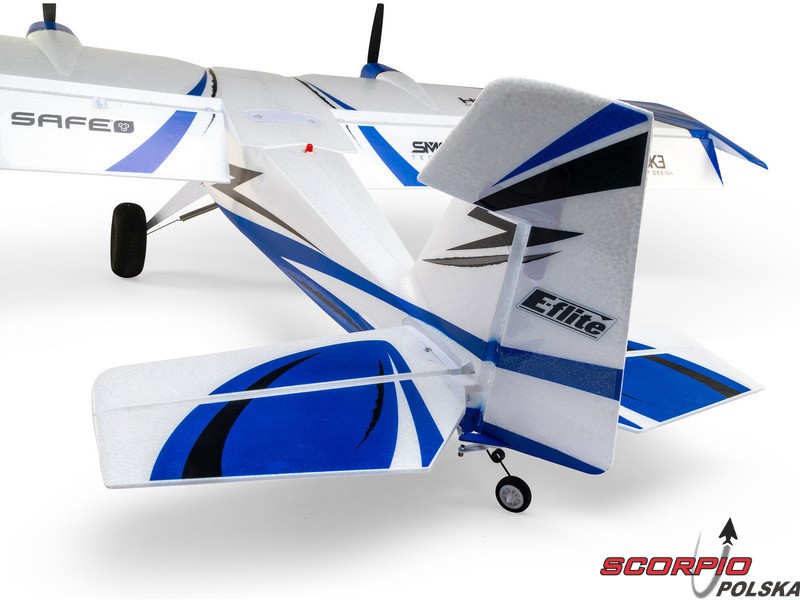 Dla niezbyt doświadczonych pilotów lub dla chcących mieć zapewniony większy poziom bezpieczeństwa, albo dla początkowego zapoznania się z modelem, można aktywować opcjonalną technologię SAFE Select, która jest zintegrowana w odbiorniku. Nie wymaga się żadnego programowania, po prostu wystarczy sparować odbiornik z SAFE lub bez niego, a w przypadku wyboru SAFE ustawić przełącznik, którym można funkcję wyłączać i włączać. Funkcja SAFE zabezpieczy położenie w locie tym, że ogranicza skrajne limity w locie nachylenia i przechylenia. Aktywna jest również stabilizacja elektroniczna, przy przywróceniu drążków nadanika do neutrum model wyrówna się do lotu poziomego.