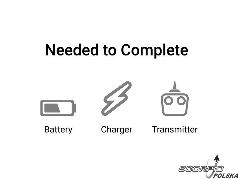 Do uruchomienia potrzebny będzie nadajnik Spektrum, akumulator LiPo 3S-4S 2200-3200mAh i odpowiednia ładowarka - patrz Zalecany zakup.