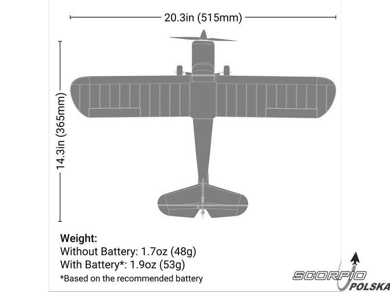 Ta wersja Ready-To-Fly (RTF) zawiera 4-kanałowy nadajnik wyposażony w technologię Spektrum DSMX 2,4 GHz oraz wszystko inne, co jest potrzebne do latania, w tym baterie AA do nadajnika, akumulator LiPo 1S 150 mAh i ładowarkę USB.