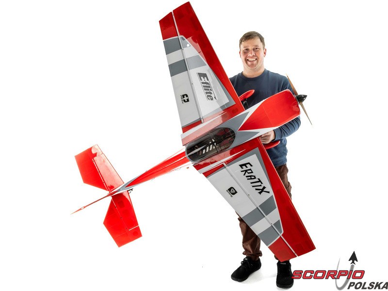 Model RC E-flite Eratix 3D SWS 1,6 m do lotów akrobacyjnych z drewnianą konstrukcją i folią UltraCote. Łatwy montaż. Opcjonalne boczne generatory siły nośnej (SFG), podwozie z włókna węglowego. Wersja ARF jest przeznaczona do uzupełnienia własną elektroniką, napędem i aparaturą RC.