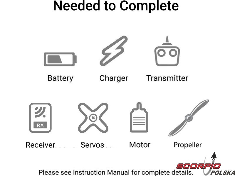 Aby rozpocząć eksploatację, należy dodać silnik Outrunner 900–1500 W, regulator 100 A, serwomechanizmy Mini (2x min. 9 kg.cm dla lotek, 2x min. 11 kg.cm dla steru kierunku i wysokości), min. 4-kanałową aparaturę RC, akumulator LiPo 6S 22,2 V 3200-7000 mAh 30C+ oraz kompatybilną ładowarkę.