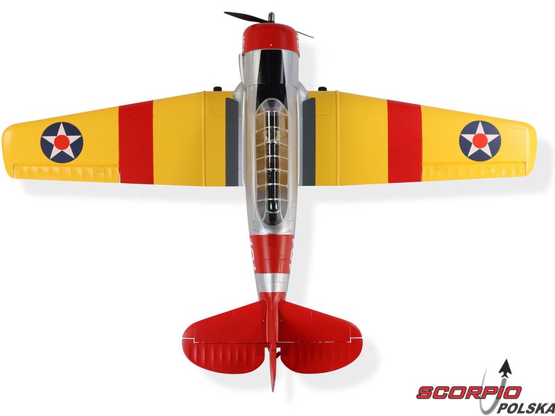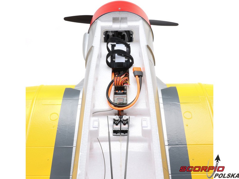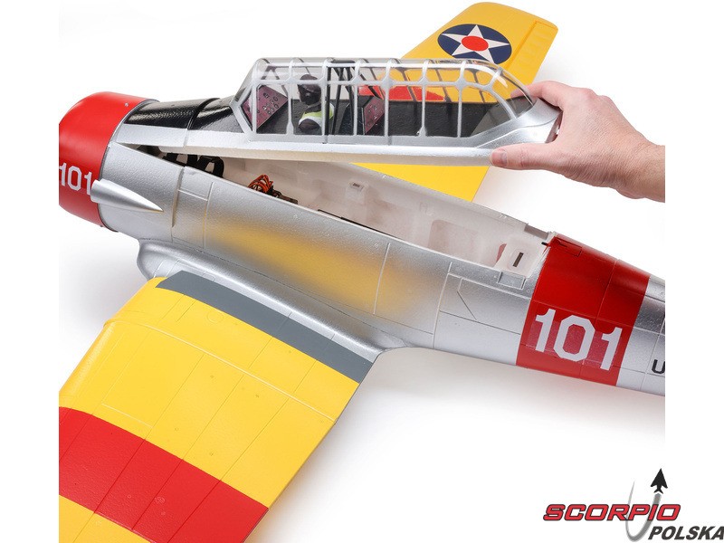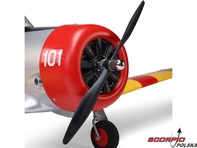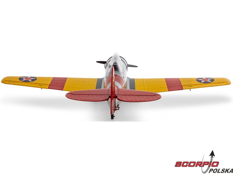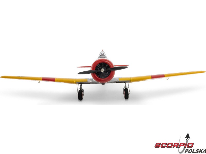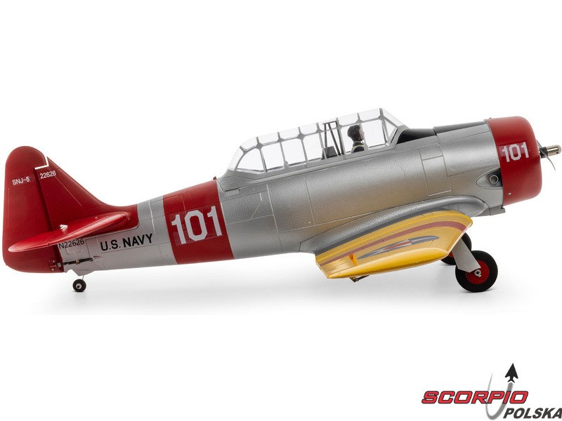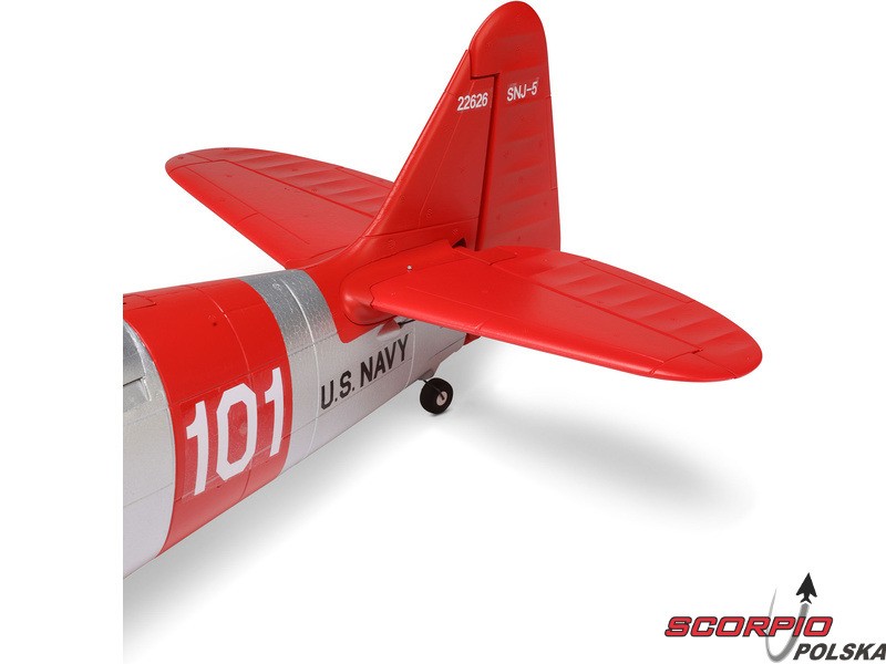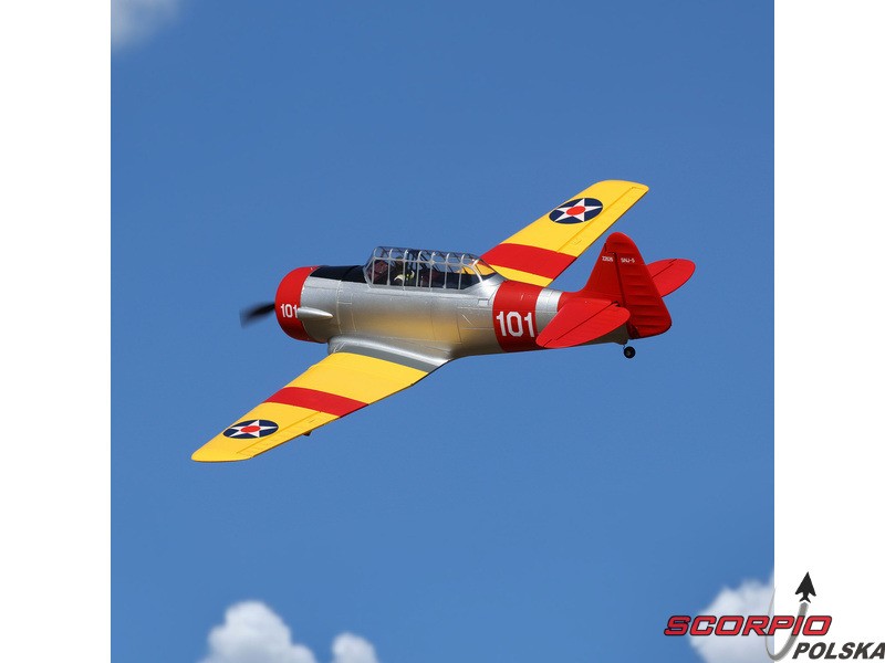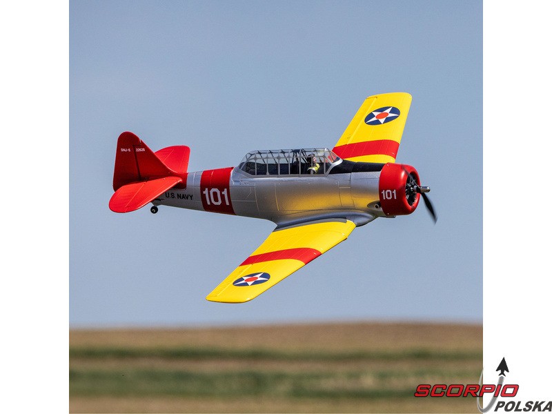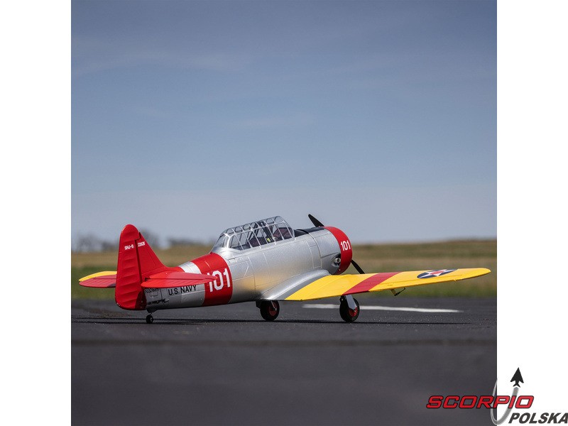 Model RC jednego z najbardziej znanych samolotów szkoleniowych – E-flite SNJ-5/AT-6 Texan o rozpiętości skrzydeł 1,5 m z elektrycznym chowanym podwoziem i klapami. Napęd modelu został całkowicie zmodernizowany i obecnie zawiera silnik bezszczotkowy oraz regulator z możliwością zasilania 3-4S LiPo, co zapewnia wyższą moc i lepsze właściwości akrobacyjne. Zainstalowana elektronika Spektrum – regulator Smart 70A i odbiornik. Inteligentna elektronika Spektrum w modelu oferuje szereg zalet, których nie znajdziemy nigdzie indziej. Dzięki kompatybilnemu nadajnikowi (sprzedawanemu oddzielnie) można uzyskać dostęp do wielu danych telemetrycznych - napięcia akumulatora, poboru prądu, temperatury i innych danych. Ta wersja BNF Basic jest wyposażona w odbiornik Spektrum z ulepszoną technologią AS3X+, która jeszcze lepiej stabilizuje lot przy wietrze i turbulencjach, a także opcjonalny system SAFE Select dla łatwiejszego i bezpieczniejszego sterowania.