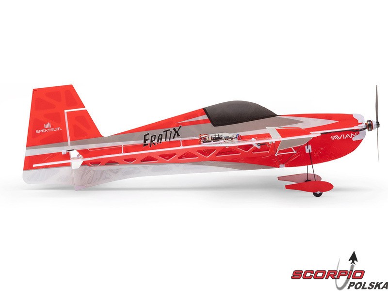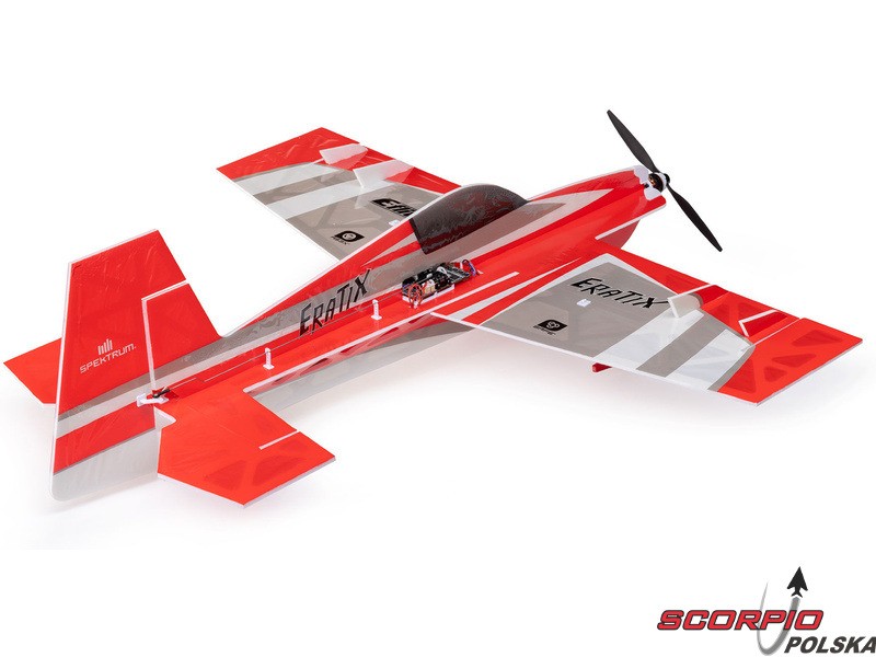 Zestaw zawiera zmontowany model samolotu RC Eratix 0,45 m 3D FF z zainstalowanymi komponentami: silnik trójfazowy 1404–3200 Kv 12P, jednostka sterująca Spektrum regulator 15A/ odbiornik DSMX/ serwomechanizmy (ster wysokości, ster kierunku), 2x serwomechanizm liniowy o długim skoku 2,9 g (lotki). Instrukcja EN, DE, FR, IT.