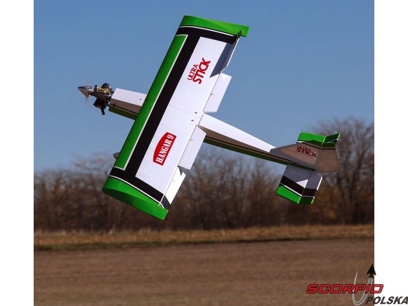 Potrzebujecie technicznie niezaawansowanego modelu akrobacyjnego? To właśnie jest to model dla Was! Duży model RC samolotu Ultra Stick od Hangar 9. Możliwość zastosowania napędu elektrycznego bądź benzynowego 30ccm. Prosta koncepcja modelu, doskonałe własności lotne, dwu klapowe skrzydło.